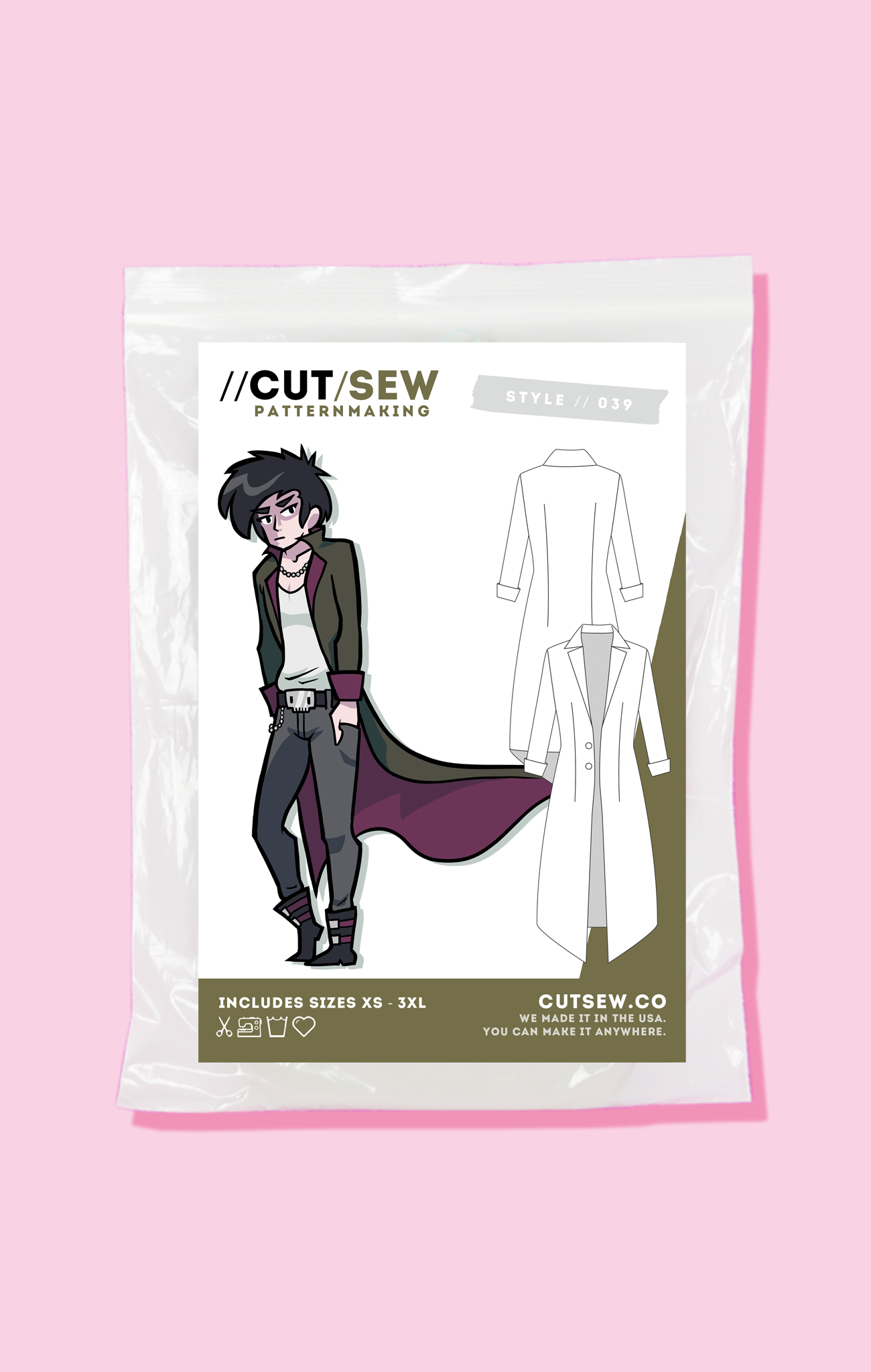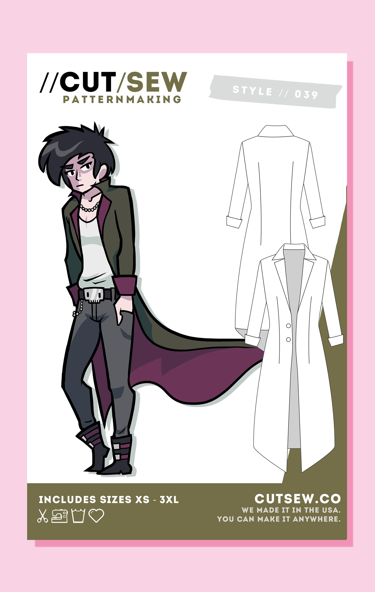 Included: a coat that will flap dramatically behind you when you turn your back on your enemies. This manime cosplay staple features a calf-length duster coat with cropped cuffs, a two-button front closure, and darting for a tailored look. The pattern accounts for self-lining and includes interlining pieces for more structure.