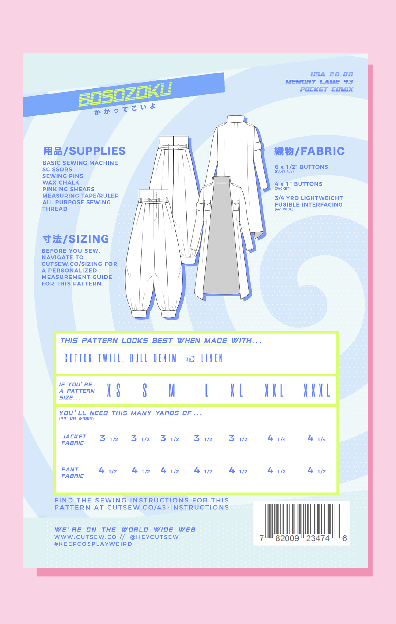 Kisama! This rowdy boy bancho pattern set features the full ensemble for the ultimate in moto-gang yankii fashion: a calf-length coat with epaulettes, arm band, and optional center front buttons, as well as drop crotch pants with maximum pleating and gathers for an oversized school uniform look. Grab your bike and baseball bat and hit the streets, or your enemies with that baseball bat we guess.