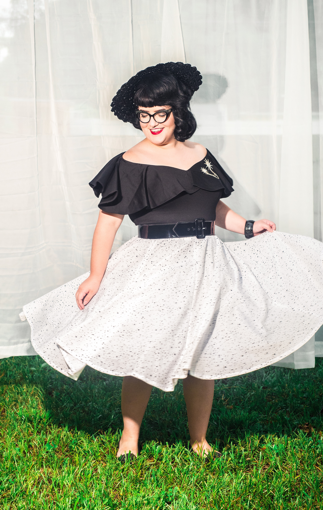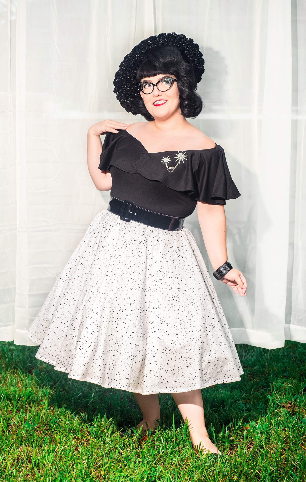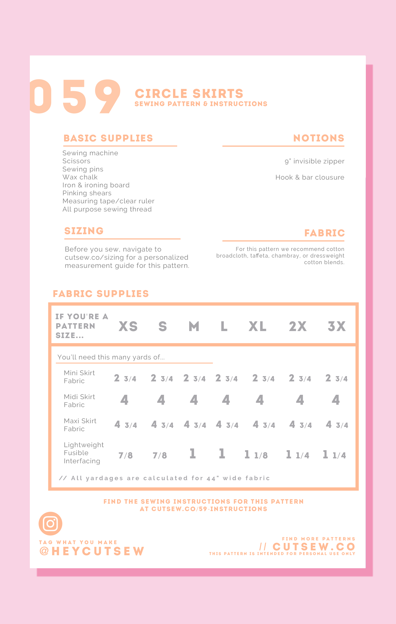 Good morning Baltimore! This set of three circle skirts covers all of your swingin' fashion needs with three different lengths & fullnesses: a double circle mini skirt for maximum poof, a traditional knee length "poodle skirt", and a calf-length 3/4 circle great for evening wear. All feature an invisible zipper closure and a waistband secured with a hook & bar. Make it your own with trim and appliques, or make one as is for a night of twisting on The Corny Collins Show.