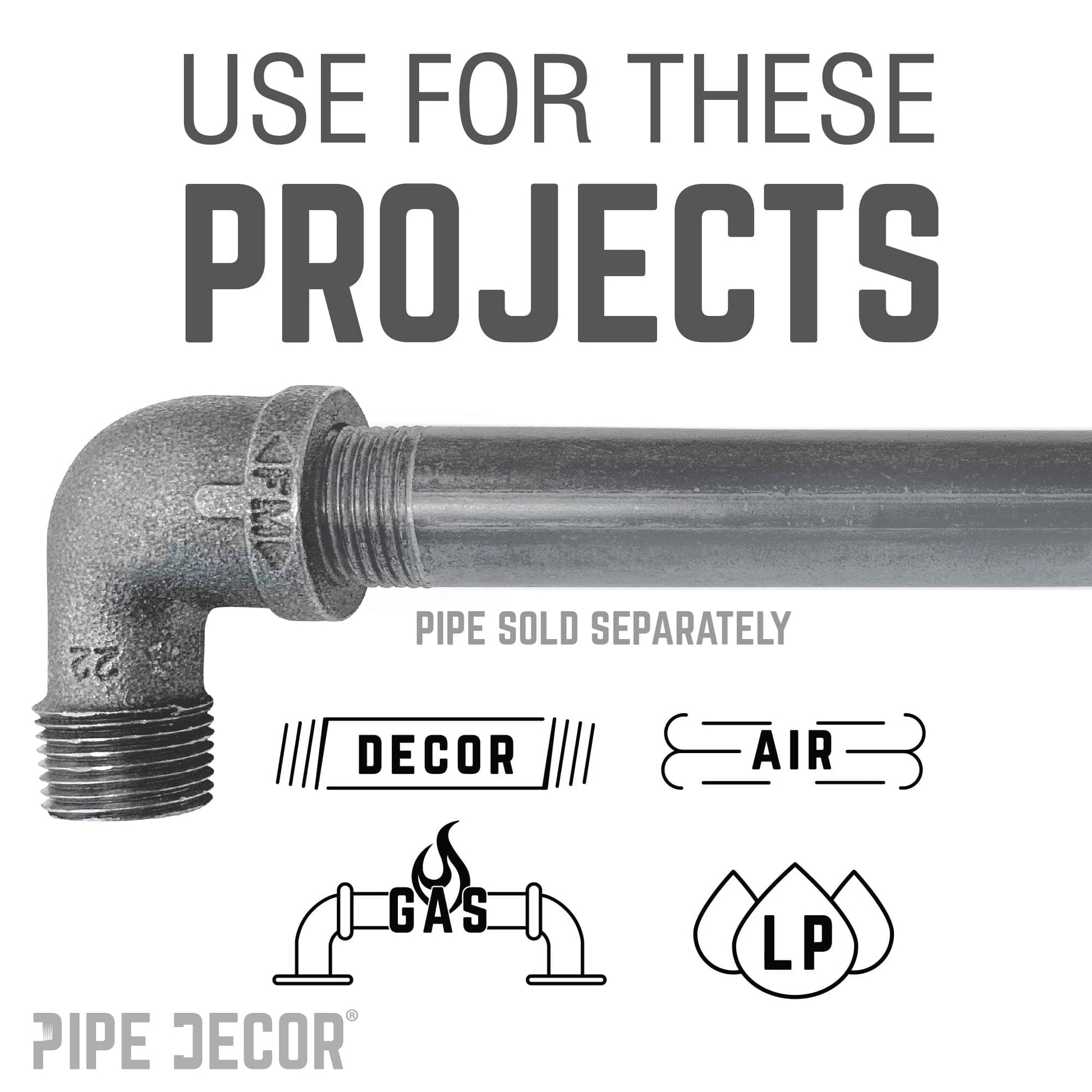 You will know PIPE DECOR parts and accessories when you hold them. Beauty and beast. Strength and style. These are real industrial fittings for your decorations and designs. Accept no substitutes. Extra pieces and accessories are available for your custom projects and expansions. Plug and play as desired.