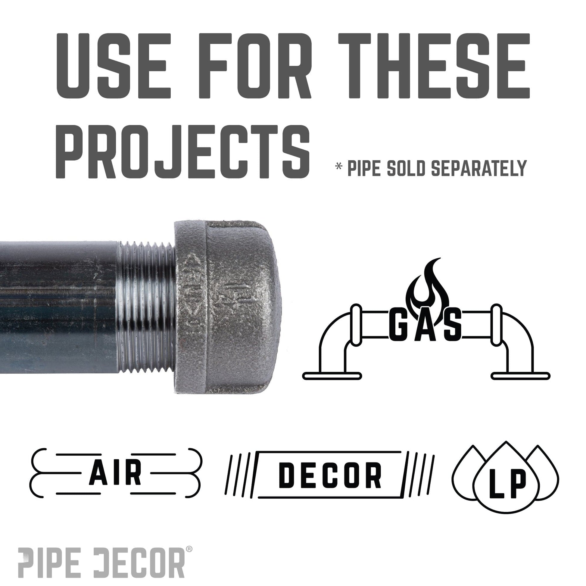 Cap it in style. Add a finished look to any pipe that’s not connected to another pipe or fitting. Use our caps as hook ends or feet for your side table. Create custom pipe fixtures and furnishings that will make a statement. Our fittings are made with durable, industrial-grade malleable iron. Fittings are 100% authentic and are made to stand the test of time. You will know PIPE DECOR parts and accessories when you hold them. Beauty and beast. Strength and style. These are real industrial fittings for your decorations and designs. Accept no substitutes. Extra pieces and accessories are available for your custom projects and expansions. Plug and play as desired.