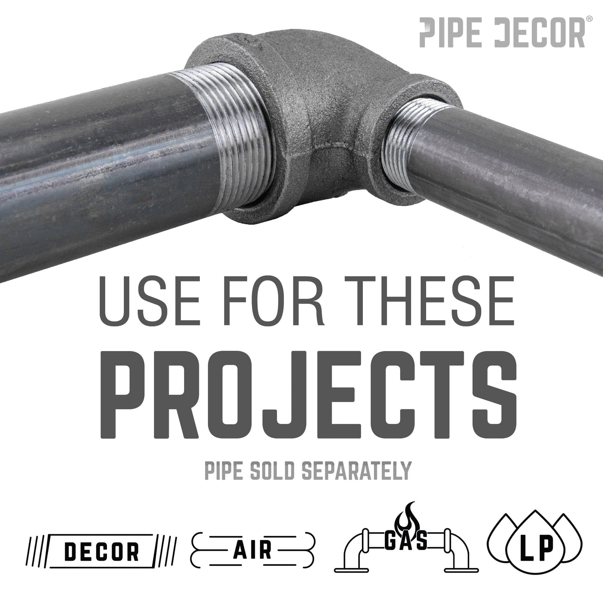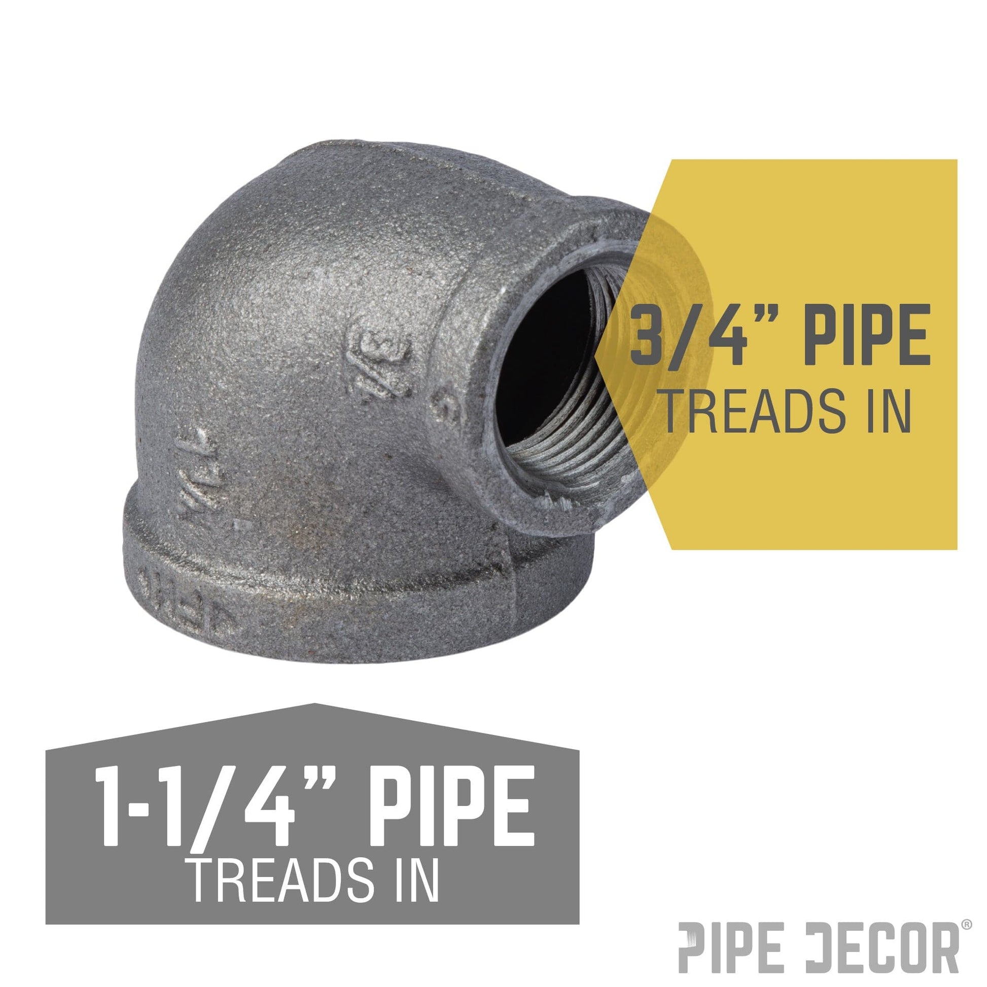 Having trouble connecting two pipes of different diameters? You need a reducing elbow. Fit that bigger or smaller pipe into your next pipe project. Create a unique visual effect by using two different pipe sizes in you DIY projects. Our fittings are made with durable, industrial-grade malleable iron. Fittings are 100% authentic and are made to stand the test of time. You will know PIPE DECOR parts and accessories when you hold them. Beauty and beast. Strength and style. These are real industrial fittings for your decorations and designs. Accept no substitutes. Extra pieces and accessories are available for your custom projects and expansions. Plug and play as desired.