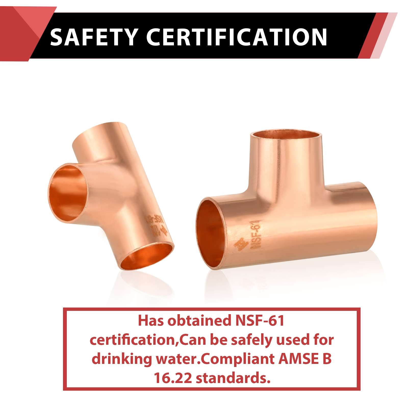 • EFIELD 1-1/4" C X C X C Copper Tee Copper Plumbing Fittings with Sweat X Sweat Connection