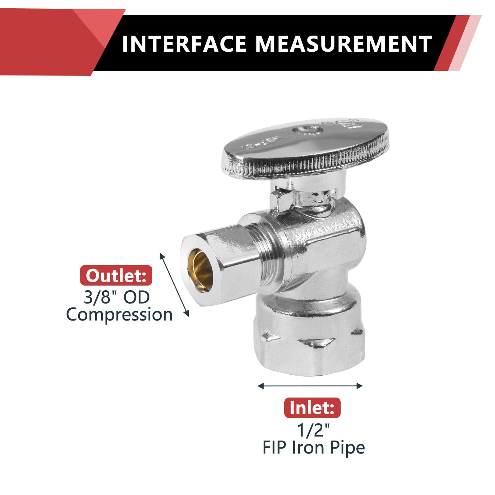 - Angle Stop Valve 1/2" FIP Iron Pipe x 3/8" Compression Chrome, 1/4-Turn
