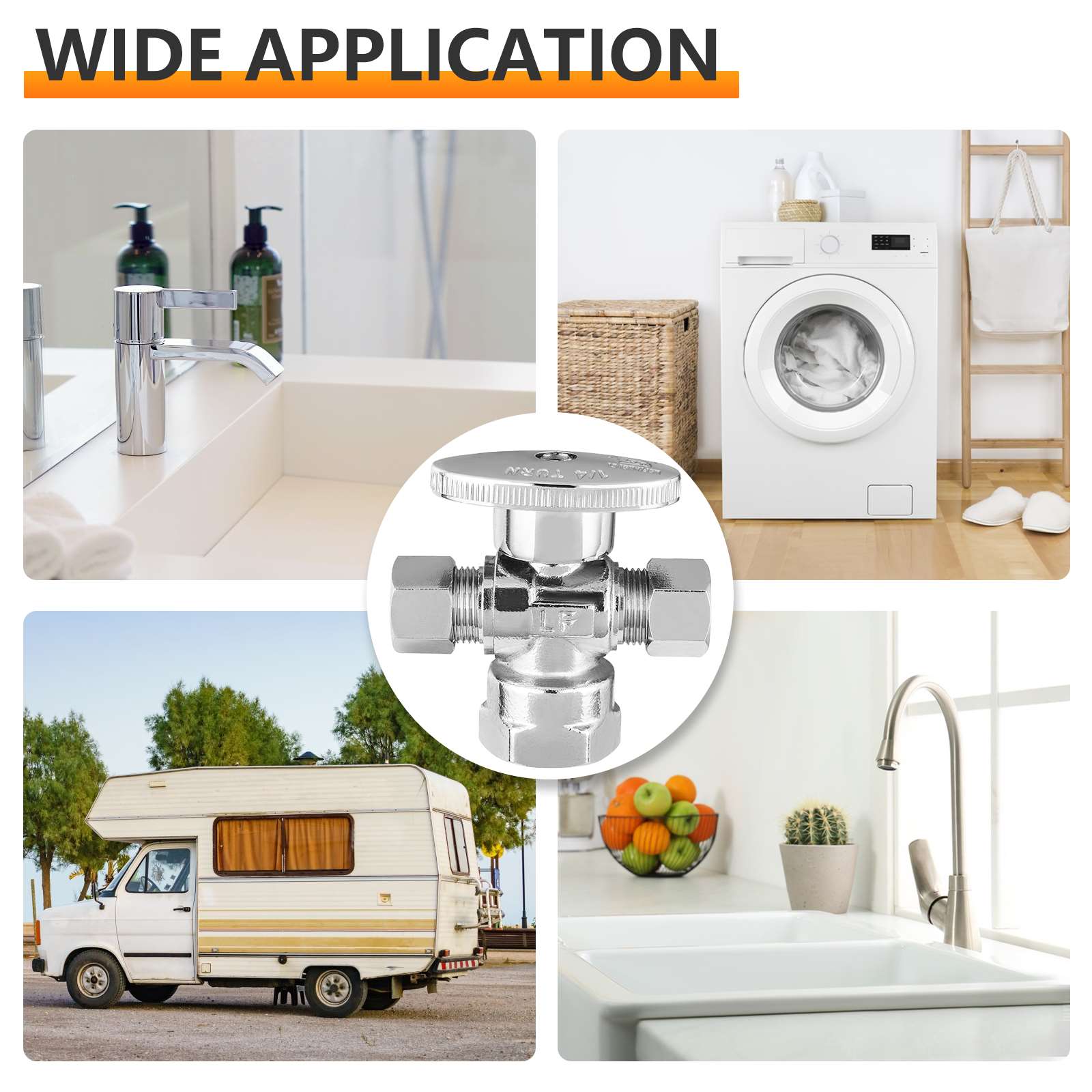 1/2" FIP x 3/8" OD Compr. x 3/8" OD Compr. Dual Angle Stop Valve, 1/4 Turn (Lead Free)