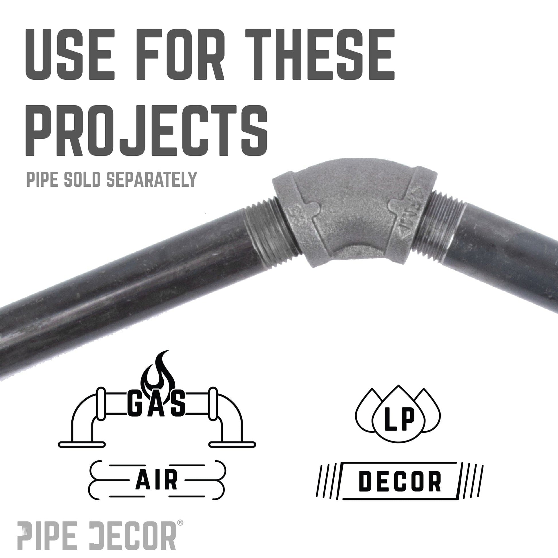 You will know PIPE DECOR parts and accessories when you hold them. Beauty and beast. Strength and style. These are real industrial fittings for your decorations and designs. Accept no substitutes. Extra pieces and accessories are available for your custom projects and expansions. Plug and play as desired.