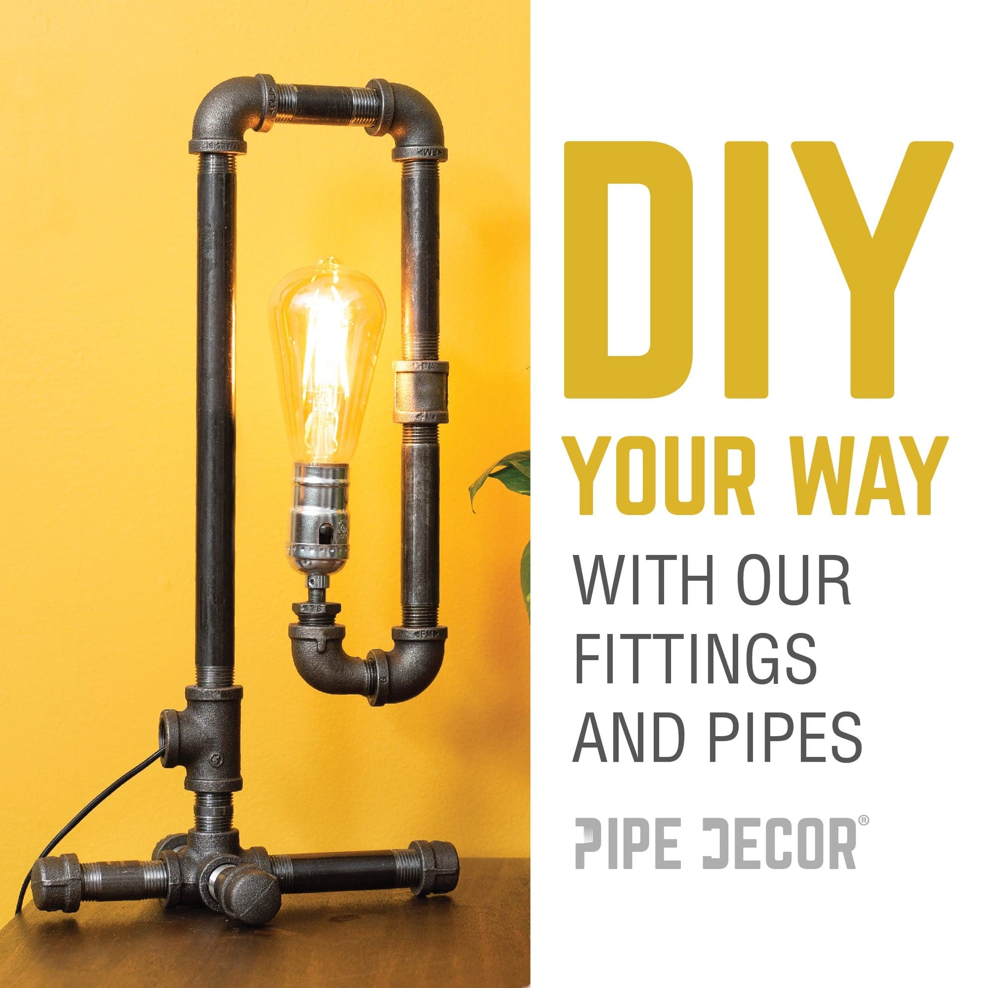 Go in a different direction with 90-degree elbows. They’re perfect for building pipe furniture with unique shapes. Create a one-of-a-kind shelf, lamp, or a piece of art that perfectly fits your space. Our fittings are made with durable, industrial-grade malleable iron. Fittings are 100% authentic and are made to stand the test of time. You will know PIPE DECOR parts and accessories when you hold them. Beauty and beast. Strength and style. These are real industrial fittings for your decorations and designs. Accept no substitutes. Extra pieces and accessories are available for your custom projects and expansions. Plug and play as desired.