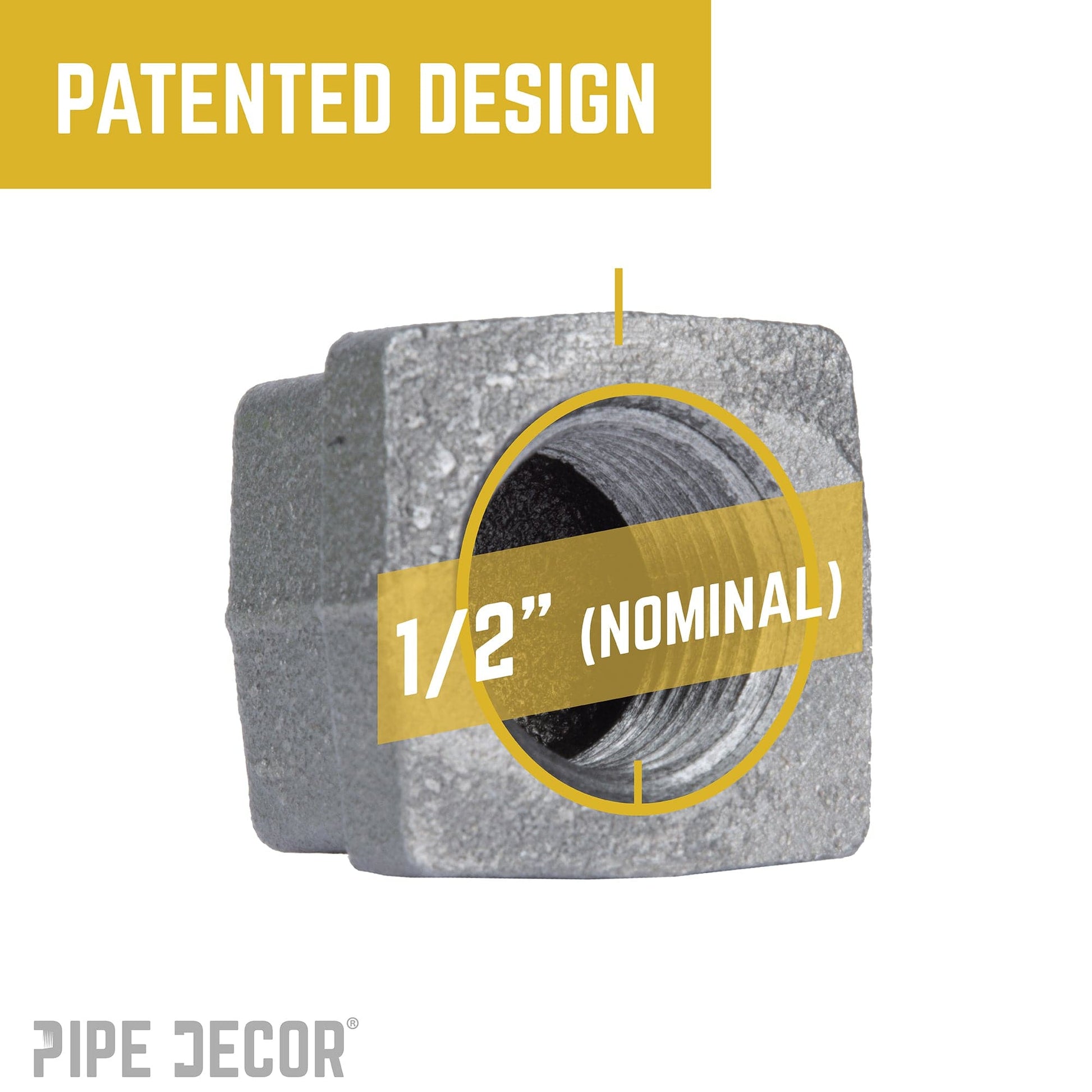 PIPE DECOR has created a one of a kind square cap design to give your industrial creations a distinct look. This patented design is exclusive to PIPE DECOR. This patented design is exclusive to PIPE DECOR.. Build industrial pipe shelving and table legs that no one else has. Complement your square tabletop or rectangular wooden shelving board with caps that are the same shape.