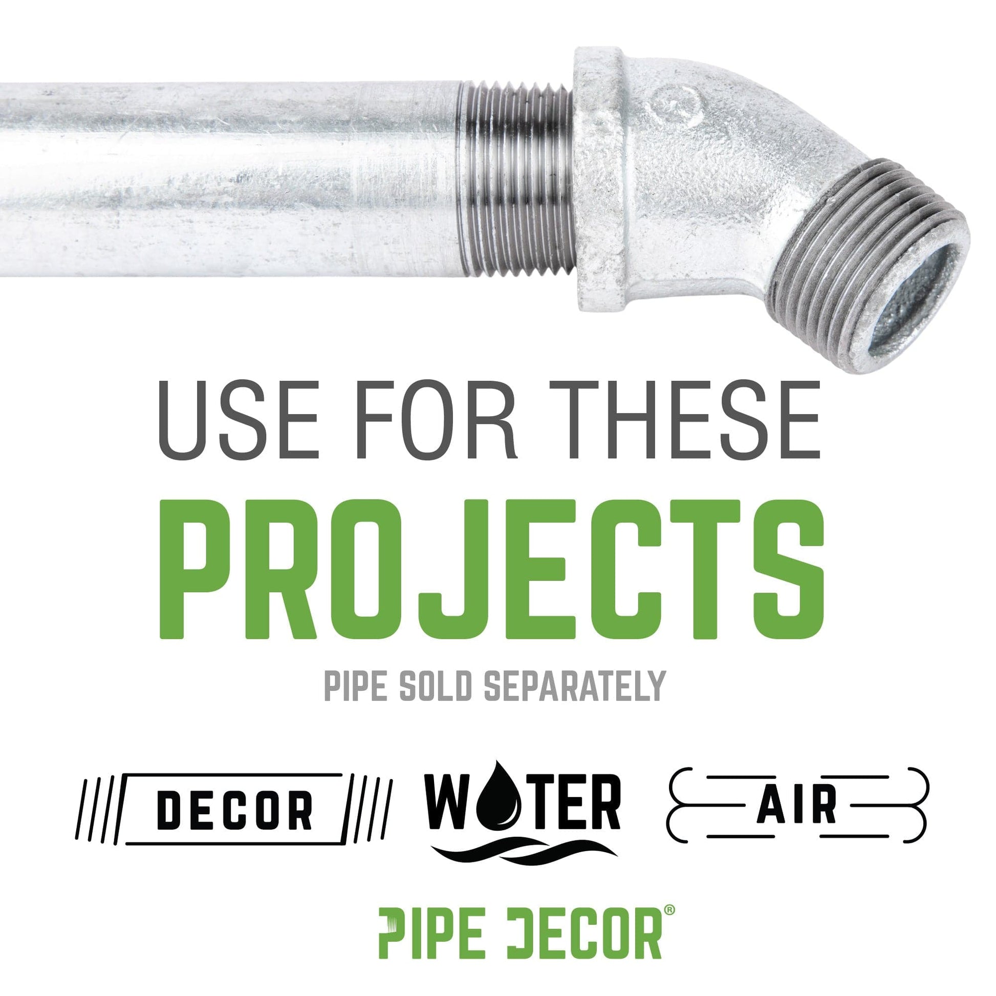 Compatible with any pipes, fittings, and PIPE DECOR furniture kits of the same diameter
