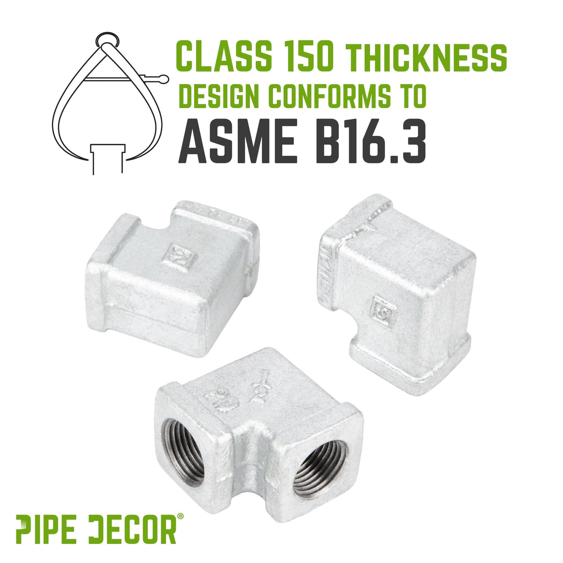 These are genuine galvanized pipe fittings that will stand the test of time. Galvanized malleable iron fittings are hot dipped in zinc, making them more resistant to corrosion. Our galvanized fittings are silver in color with a shiny finish that brings a clean, polished look to your pipe furniture. Galvanized pipes and fittings are prefinished, so you don’t have to clean or seal them before use.