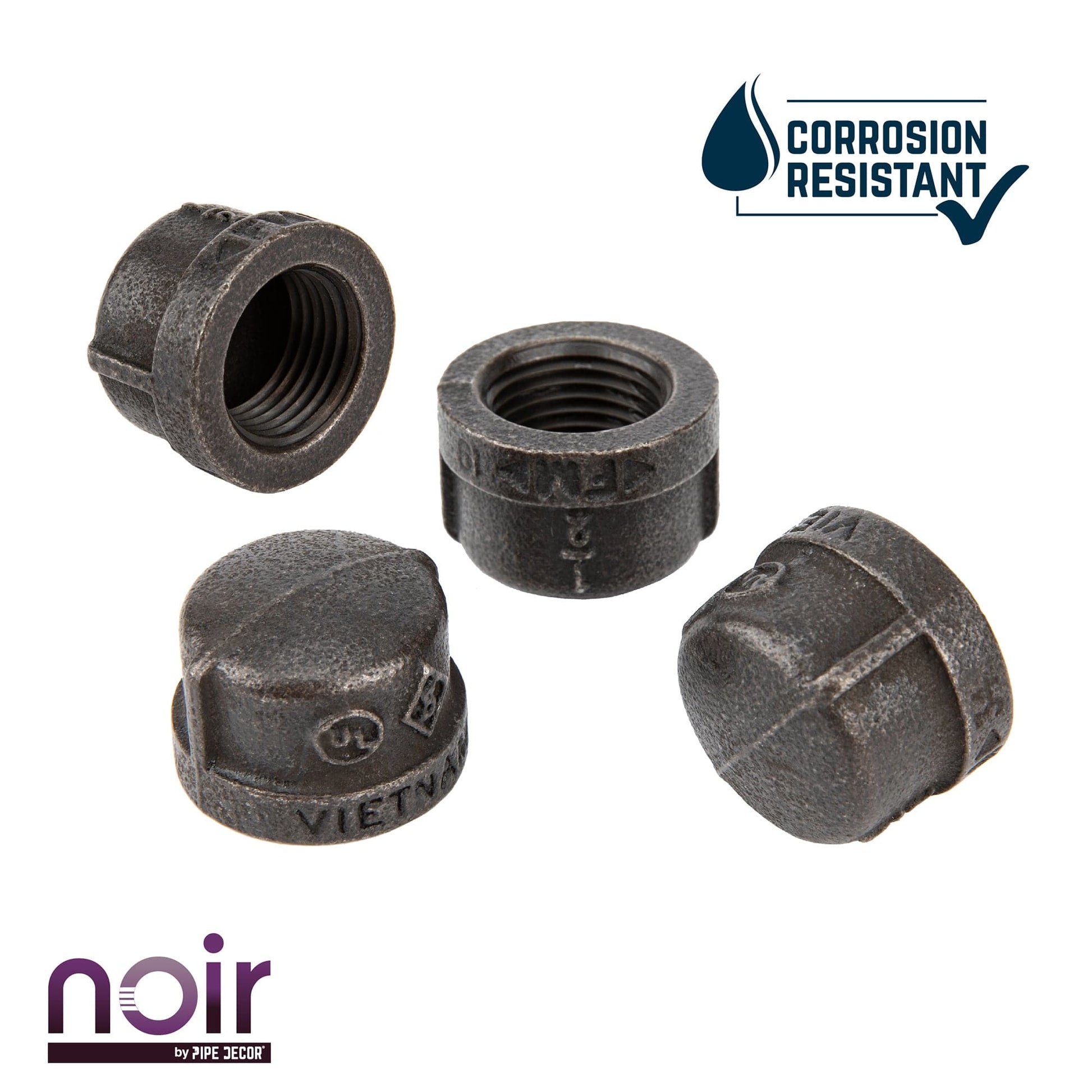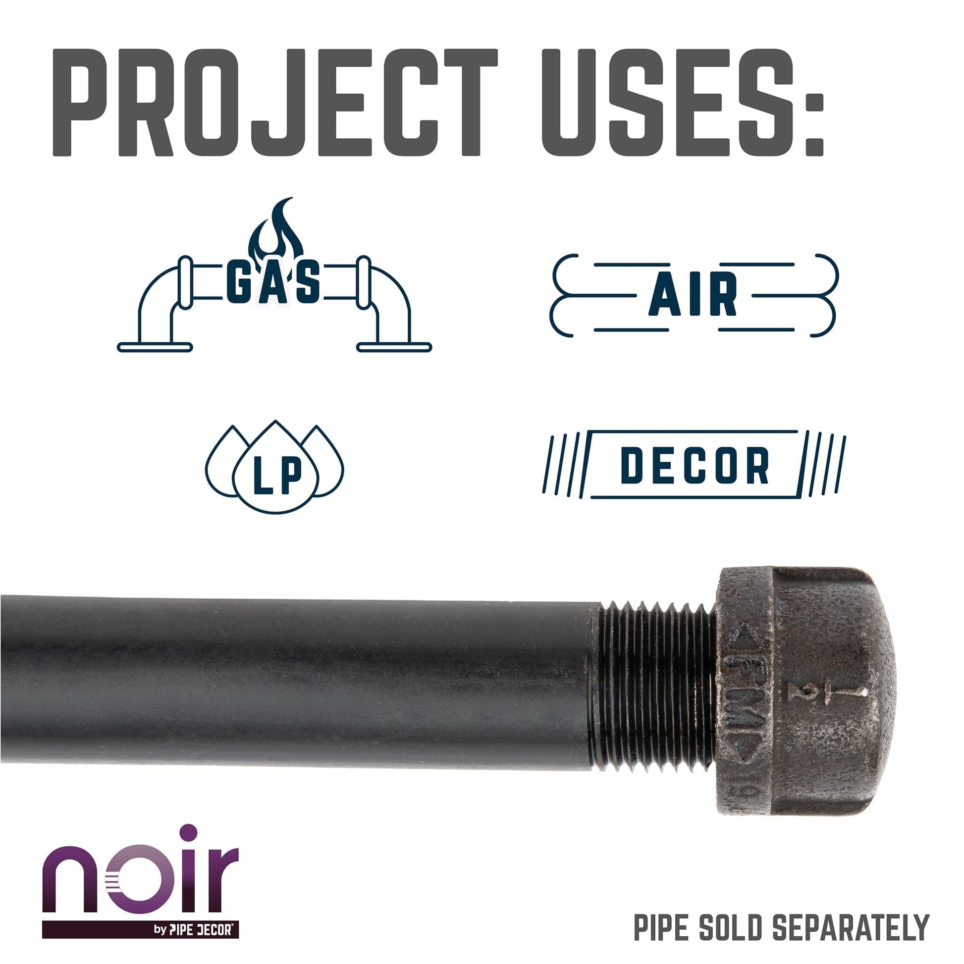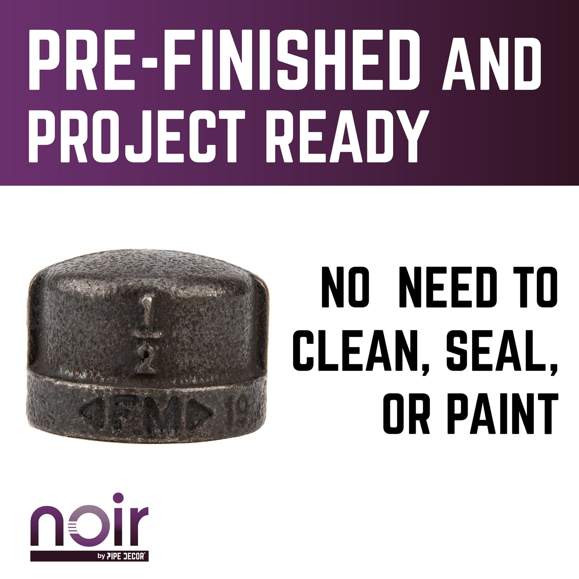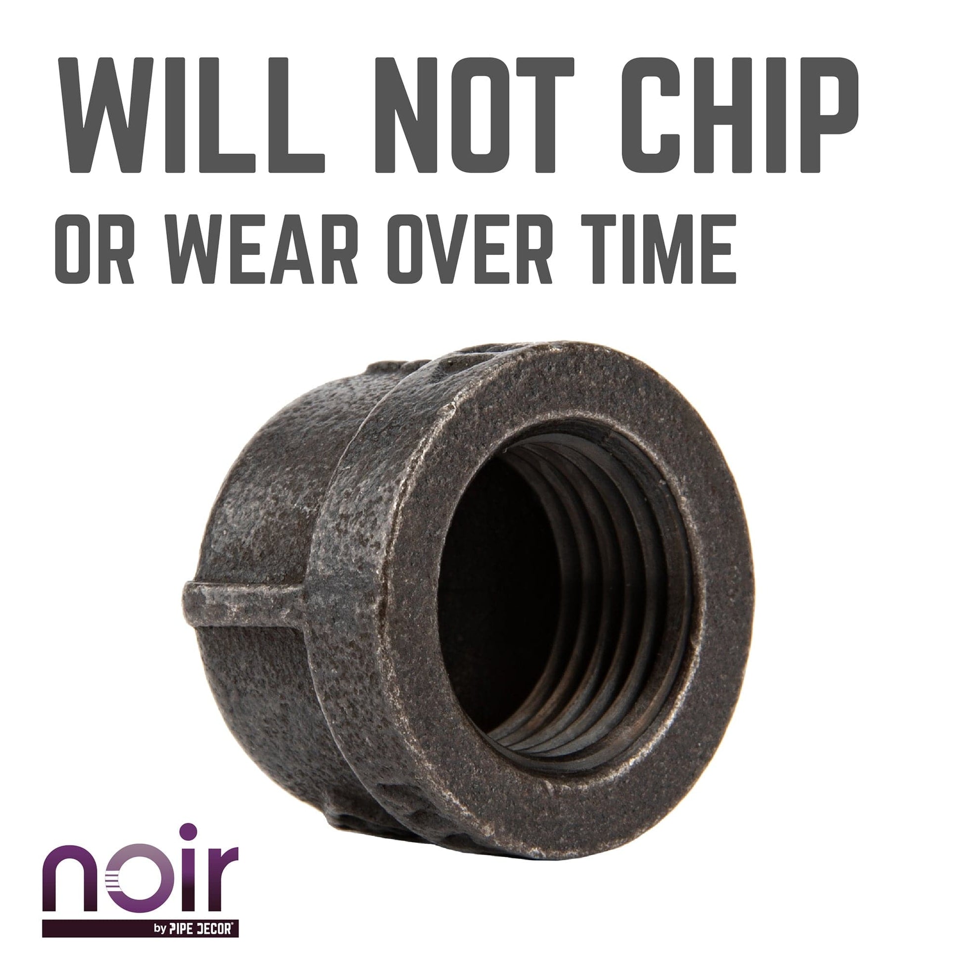 Take your industrial style to the next level with Noir by PIPE DECOR. These prefinished matte black iron fittings truly stand out from the crowd. Noir lends a sophisticated vibe to any PIPE DECOR piece. Build true black shelf brackets to pair with our RESTORE wood shelves or add black flanges to the ends of your pipe table legs. Noir also looks great with brass or galvanized accents. Combine any of our fitting finishes for a one-of-a-kind project that’s unique to you. The beauty of Noir goes below the surface. Unlike electroplated or painted items, our finishing process causes the matte black color to permeate each fitting for a deep tone that will last a lifetime. That means you never have to worry about chips or scratches. While our standard black pipes and fittings are coated in a protective oil during transit, our Noir line comes completely ready to use—no need to clean and seal. It’s laid-back and low maintenance for the DIYer on the go.