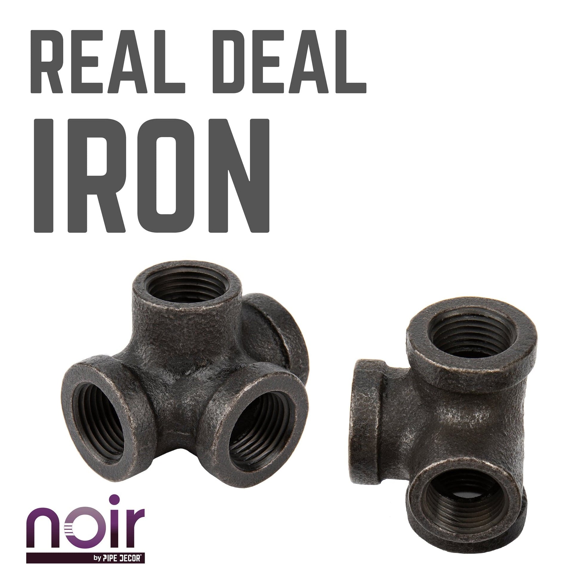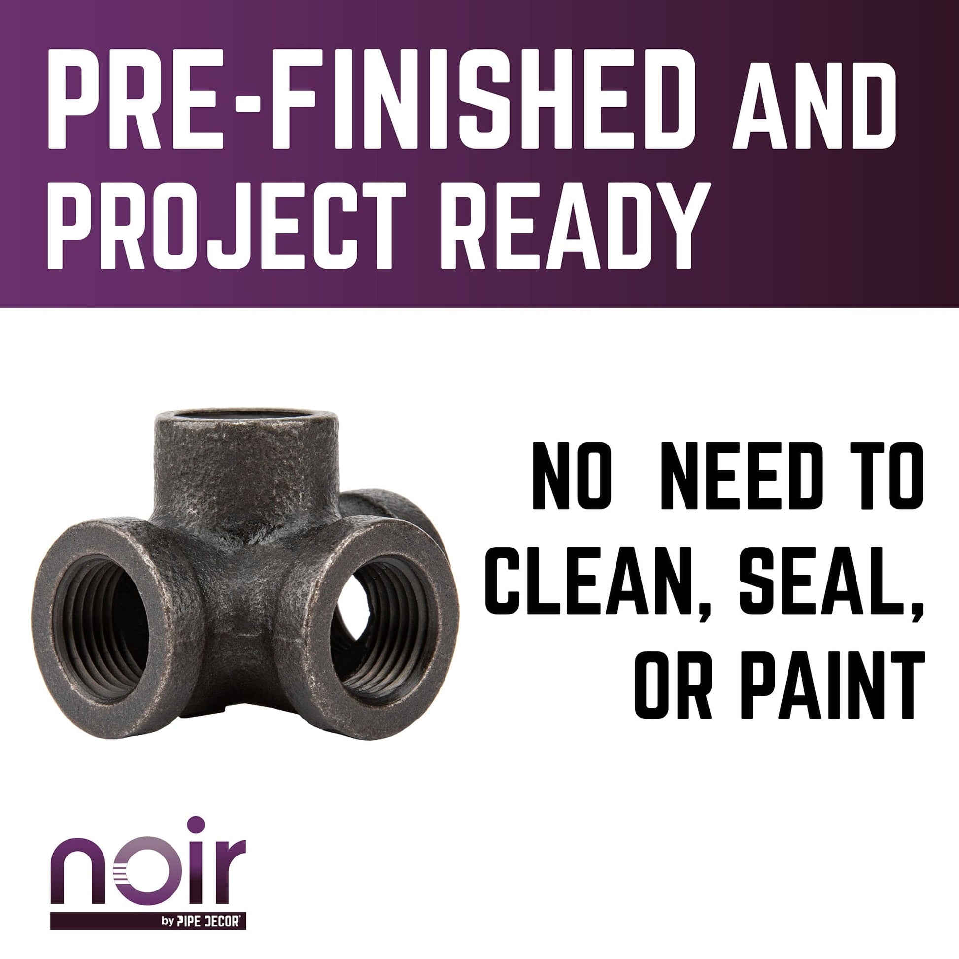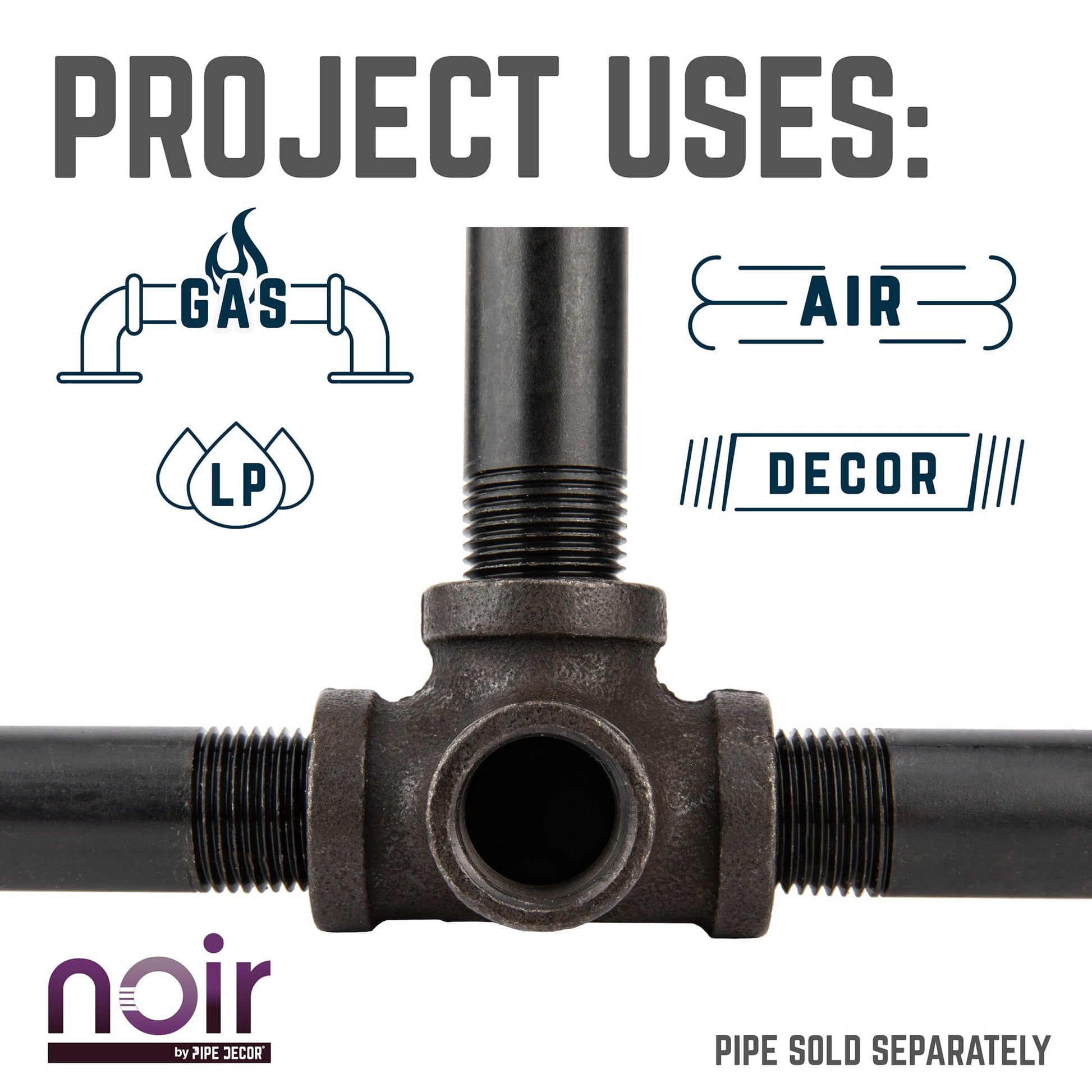 Take your industrial style to the next level with Noir by PIPE DECOR. These prefinished matte black iron fittings truly stand out from the crowd. Noir lends a sophisticated vibe to any PIPE DECOR piece. Build true black shelf brackets to pair with our RESTORE wood shelves or add black flanges to the ends of your pipe table legs. Noir also looks great with brass or galvanized accents. Combine any of our fitting finishes for a one-of-a-kind project that’s unique to you. The beauty of Noir goes below the surface. Unlike electroplated or painted items, our finishing process causes the matte black color to permeate each fitting for a deep tone that will last a lifetime. That means you never have to worry about chips or scratches. While our standard black pipes and fittings are coated in a protective oil during transit, our Noir line comes completely ready to use—no need to clean and seal. It’s laid-back and low maintenance for the DIYer on the go.