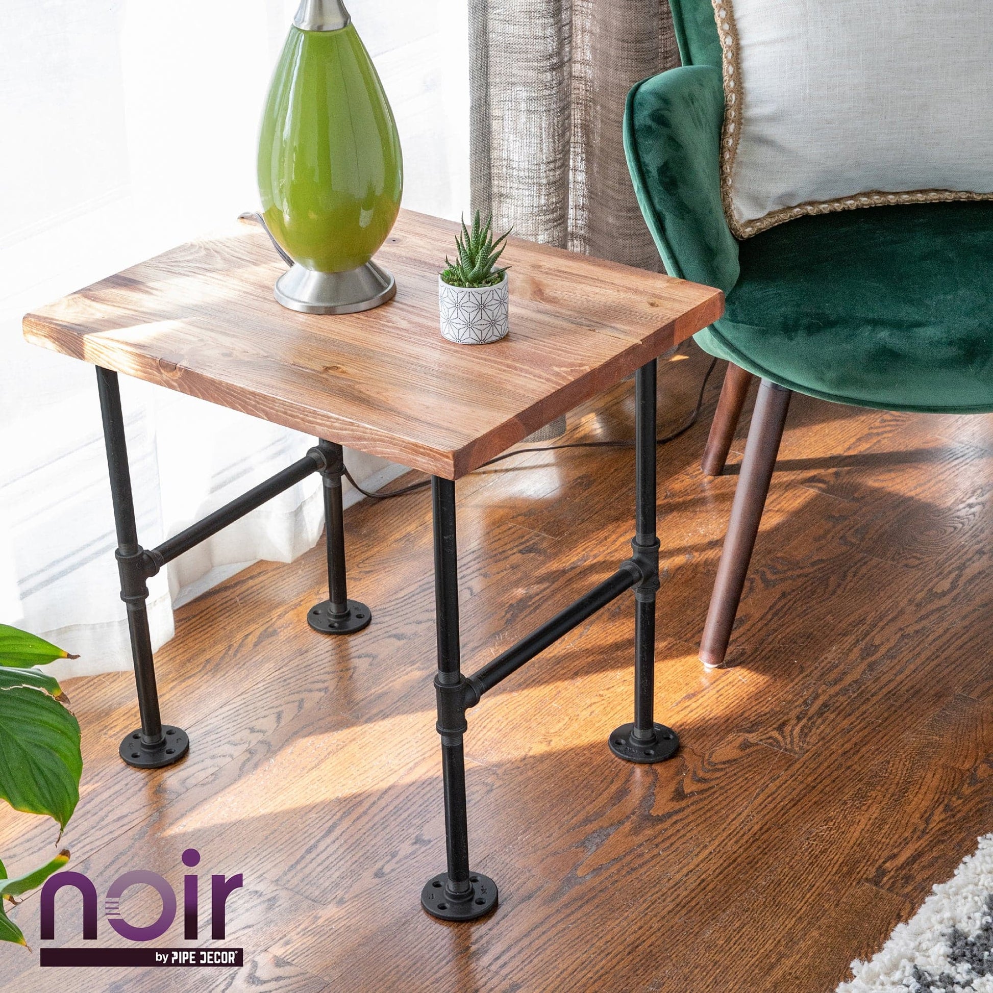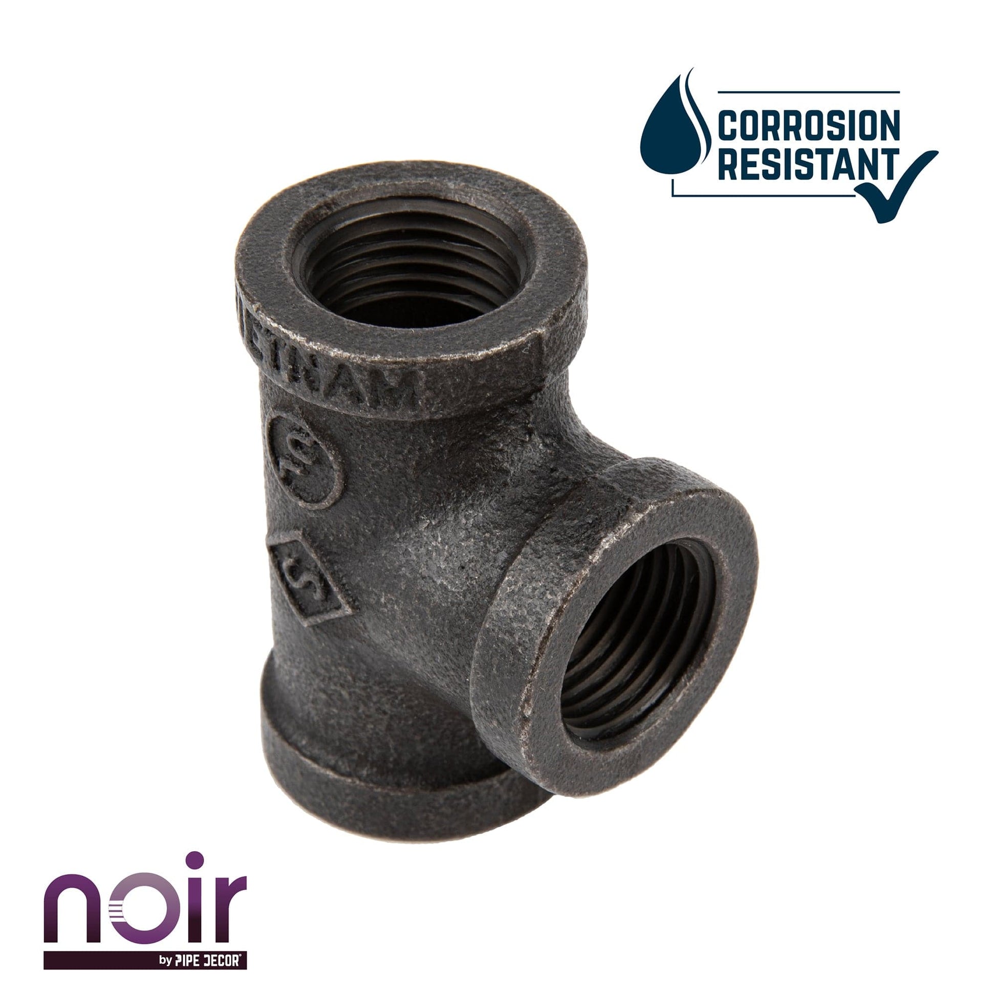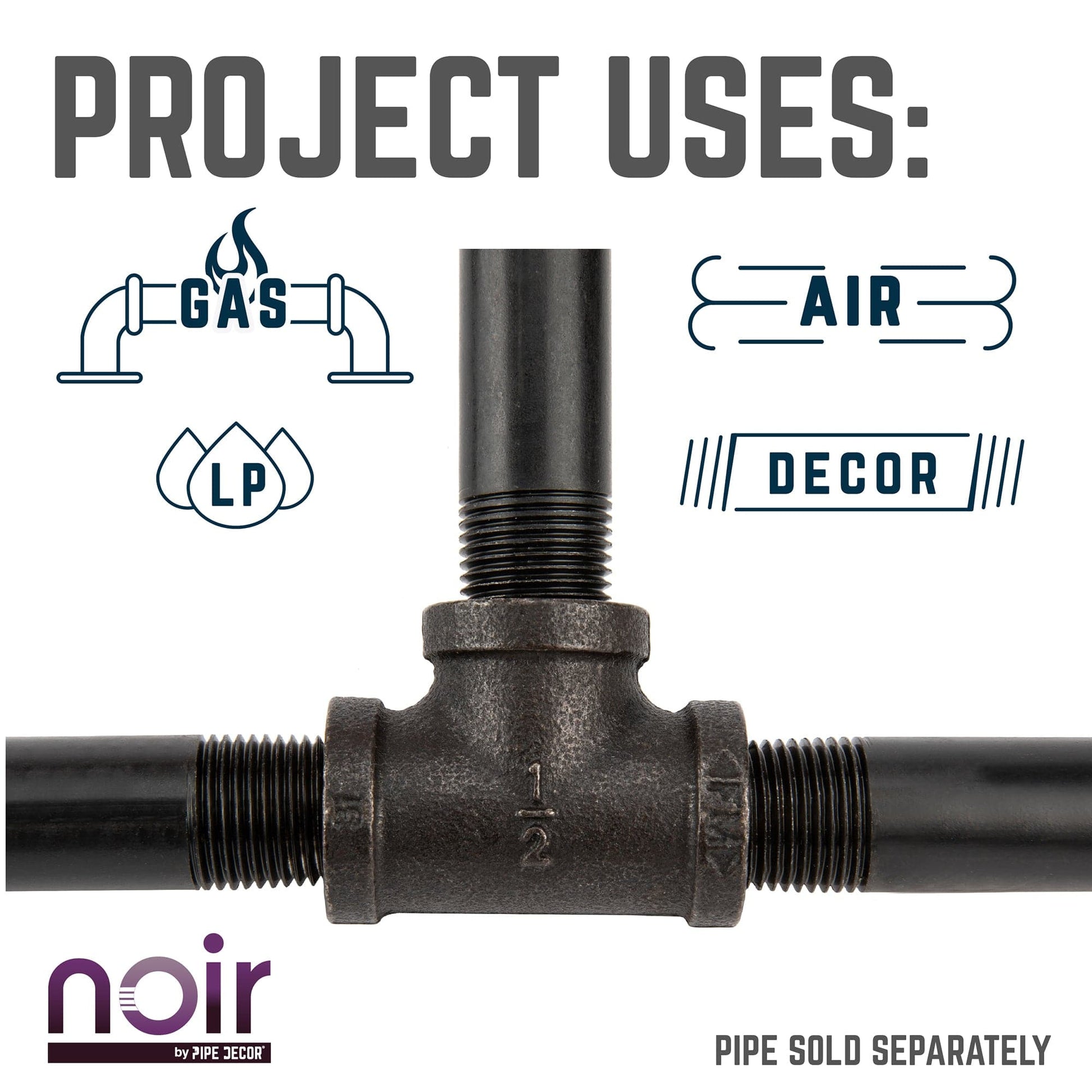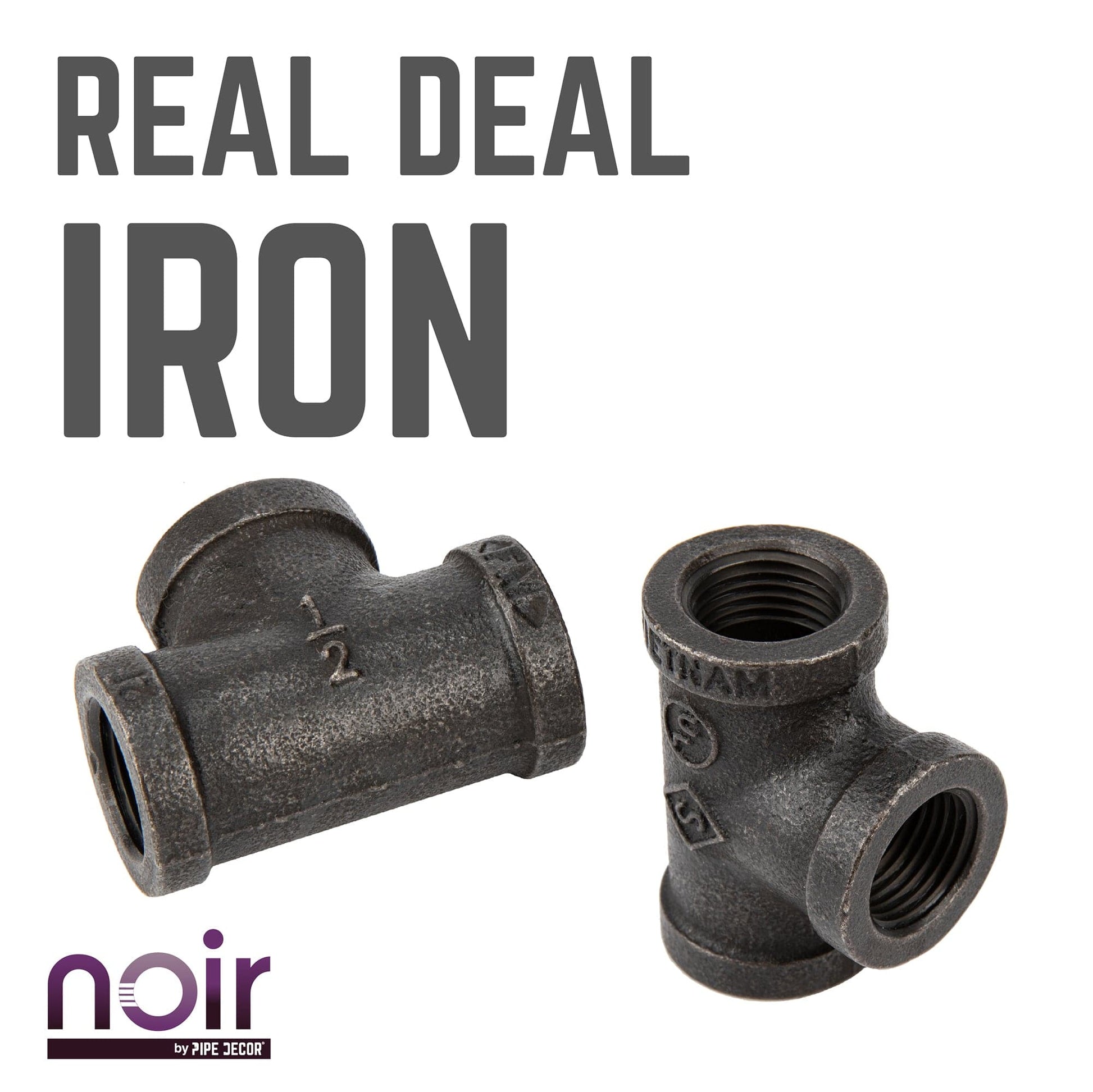 Take your industrial style to the next level with Noir by PIPE DECOR. These prefinished matte black iron fittings truly stand out from the crowd. Noir lends a sophisticated vibe to any PIPE DECOR piece. Build true black shelf brackets to pair with our RESTORE wood shelves or add black flanges to the ends of your pipe table legs. Noir also looks great with brass or galvanized accents. Combine any of our fitting finishes for a one-of-a-kind project that’s unique to you. The beauty of Noir goes below the surface. Unlike electroplated or painted items, our finishing process causes the matte black color to permeate each fitting for a deep tone that will last a lifetime. That means you never have to worry about chips or scratches. While our standard black pipes and fittings are coated in a protective oil during transit, our Noir line comes completely ready to use—no need to clean and seal. It’s laid-back and low maintenance for the DIYer on the go.