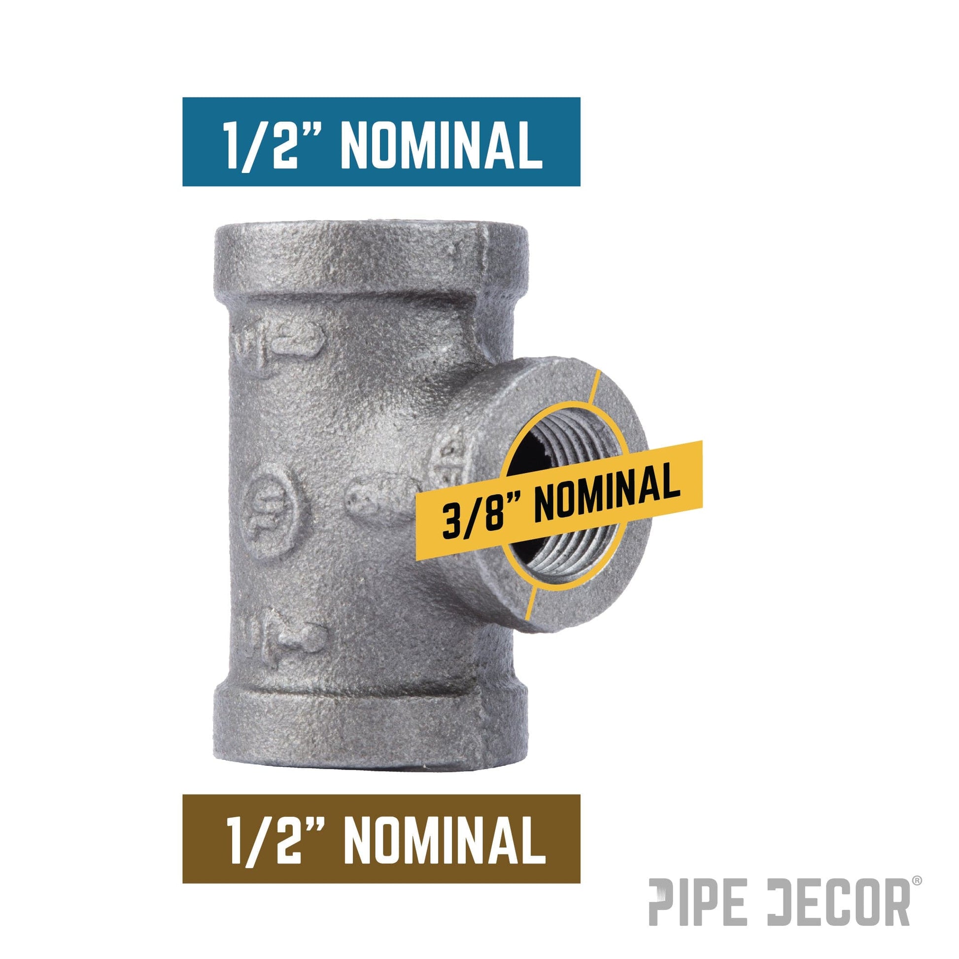 Reducing Tees give you the flexibility to build whatever you dream of. Build big pipe legs with smaller cross bars or make bigger flange feet with small bars.