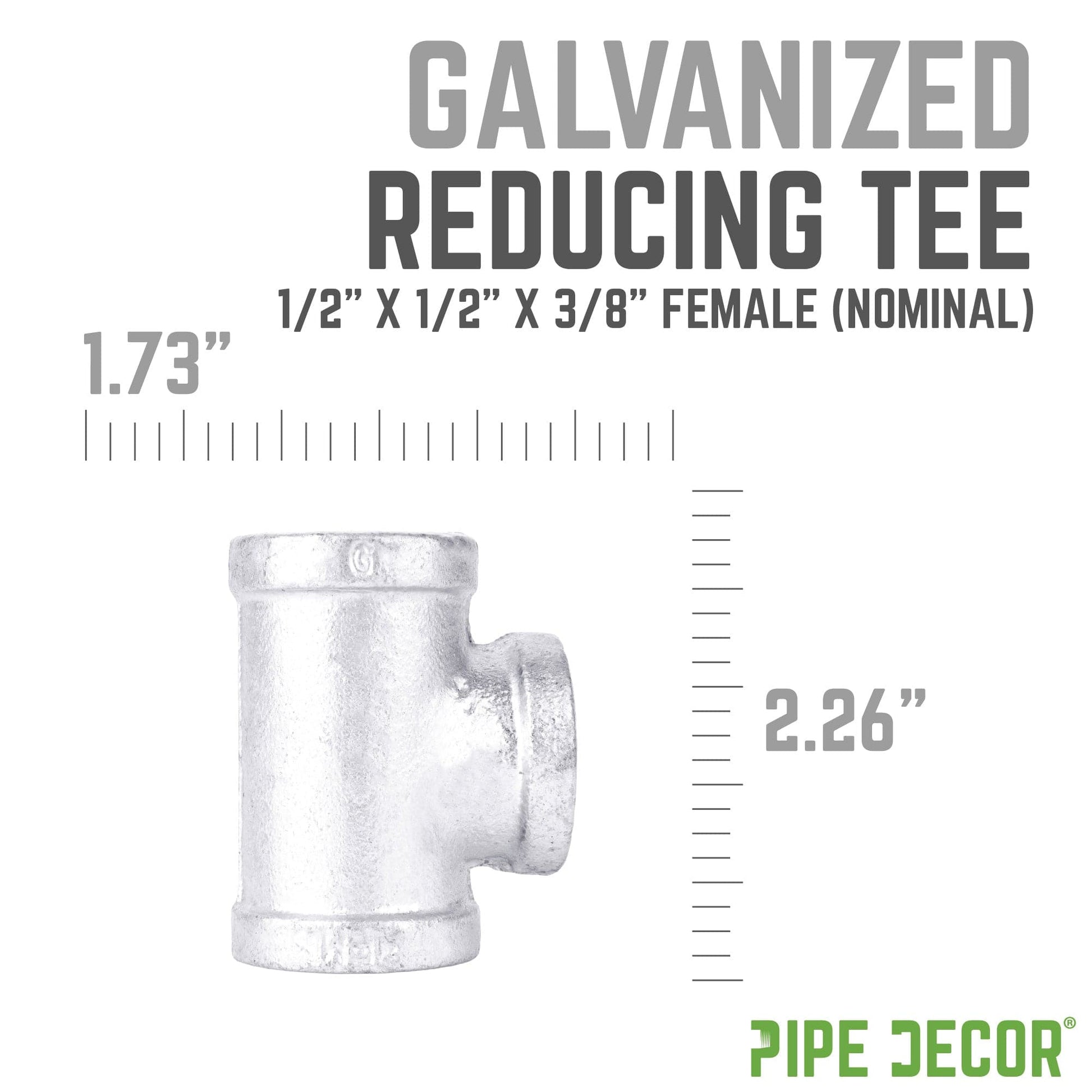 Reducing tees give you the flexibility to build the project of your dreams. You can use a galvanized reducing tee in almost any project that you would normally use a regular tee for, as long as the smaller pipe size can support the right amount of weight for your project. Using two different pipe sizes can make for a unique visual effect.