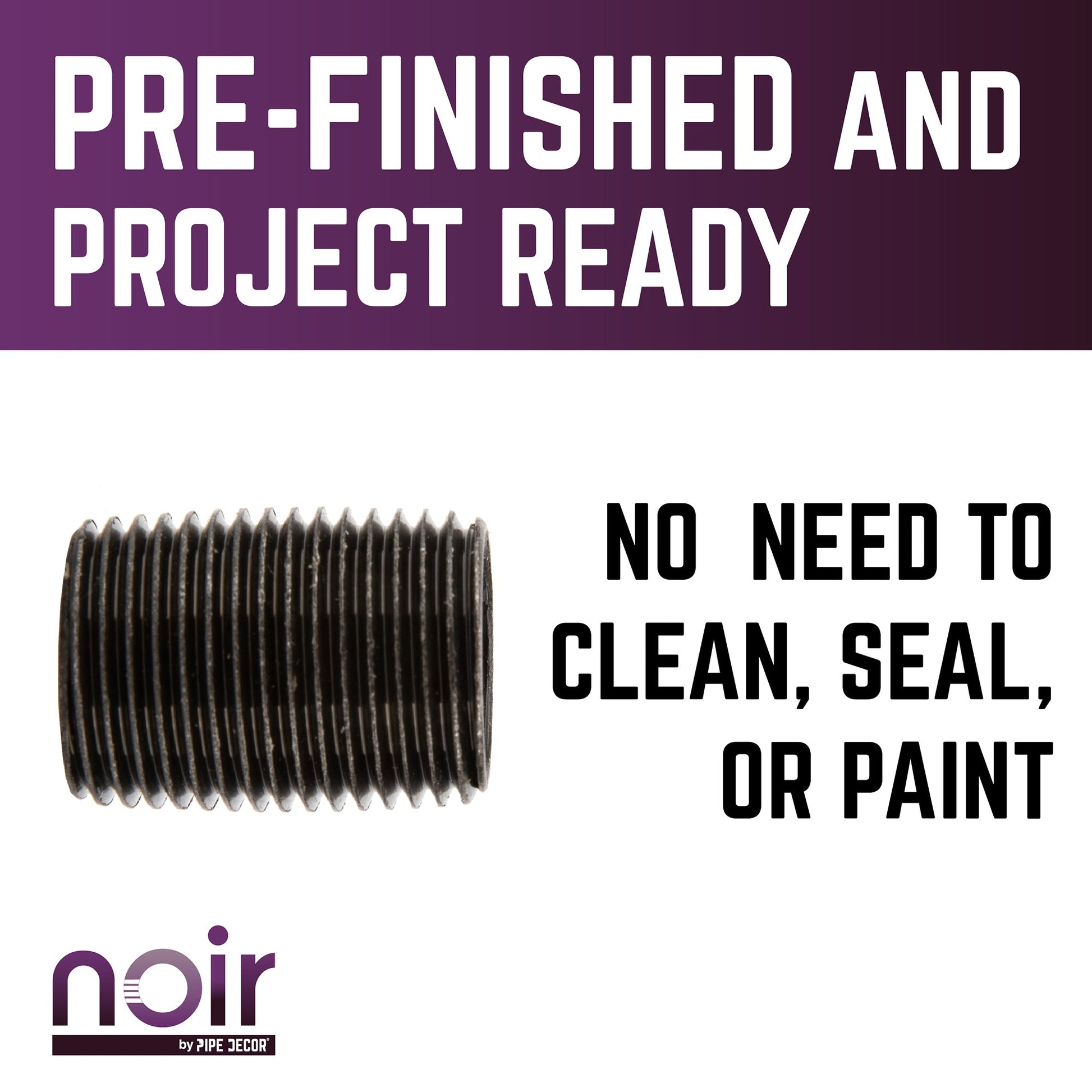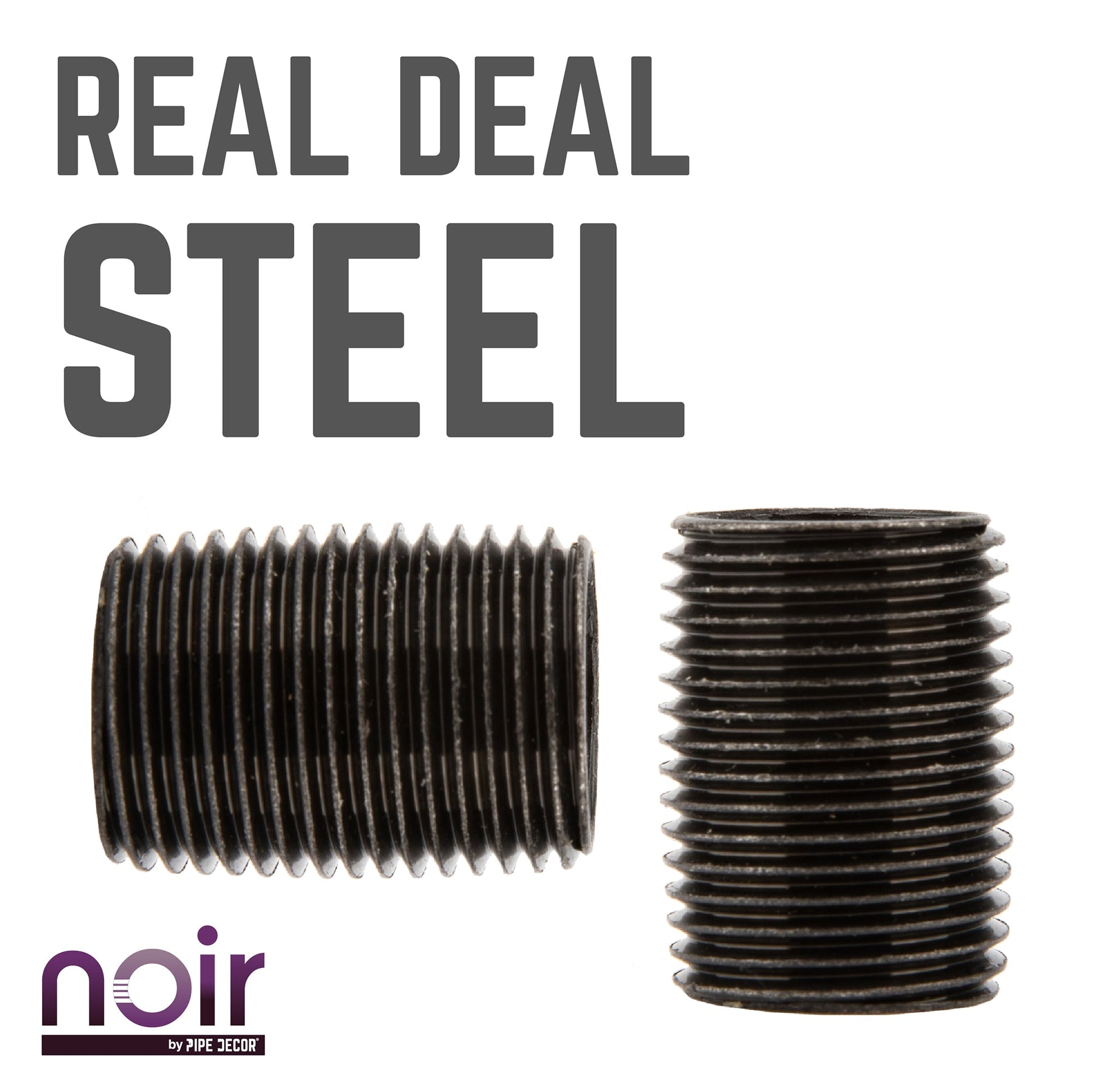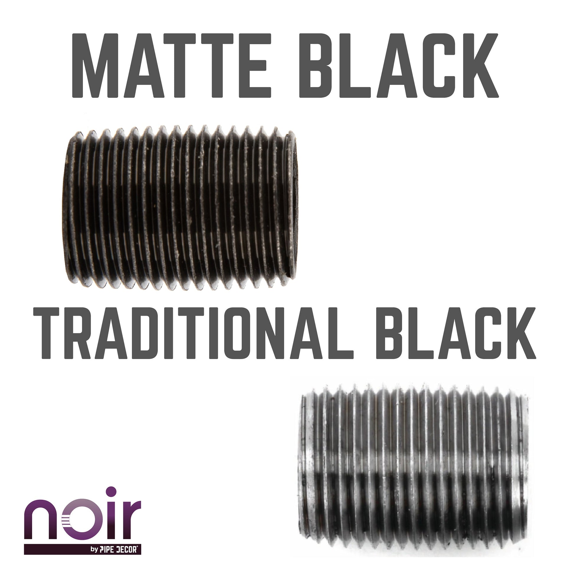 Take your industrial style to the next level with Noir by PIPE DECOR. These prefinished matte black steel pipes truly stand out from the crowd. Noir lends a sophisticated vibe to any PIPE DECOR piece. Build true black pipe legs using our pipes and fittings or create a black clothing rack for your home or retail space. Noir also looks great with brass or galvanized accents. Combine any of our pipe finishes for a one-of-a-kind project that’s unique to you. The beauty of Noir goes below the surface. Unlike electroplated or painted items, our finishing process causes the matte black color to permeate each pipe for a deep tone that will last a lifetime. That means you never have to worry about chips or scratches. While our standard black pipes and fittings are coated in a protective oil during transit, our Noir line comes completely ready to use—no need to clean and seal. It’s laid-back and low maintenance for the DIYer on the go.