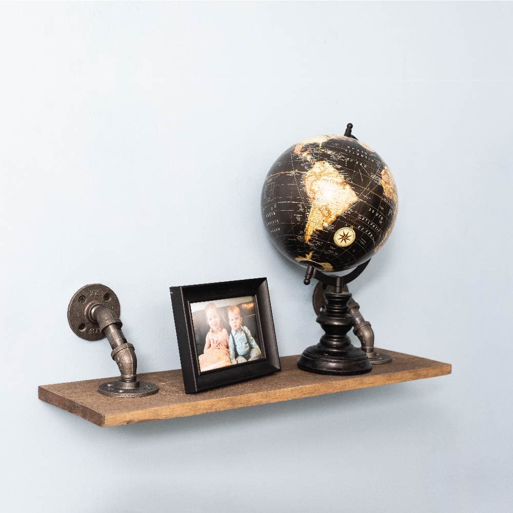 Add eye-catching style to your new set of shelves with these heavy-duty, pipe shelving brackets. Cast iron fittings and black steel pipe pair impeccably with woods of various colors and sizes. Treat your visitors to your sense of style and attention to detail. These Pipe Decor brackets fit a surprising number of looks and aesthetics, including steampunk lighting, industrial, factory, French country farmhouse, vintage, retro reclamation, and D-I-Y. You will know Pipe Decor parts and accessories when you hold them. Beauty and beast. Strength and style. This is real industrial pipe for your creative design needs. Accept no substitutes. All our pipe and fittings come coated in a light industrial grease to prevent rusting. Clean and seal each piece, before assembly, to ensure that they stay rust-free. After cleaning, seal the pipe with polyurethane spray to protect it from rust and scratches.