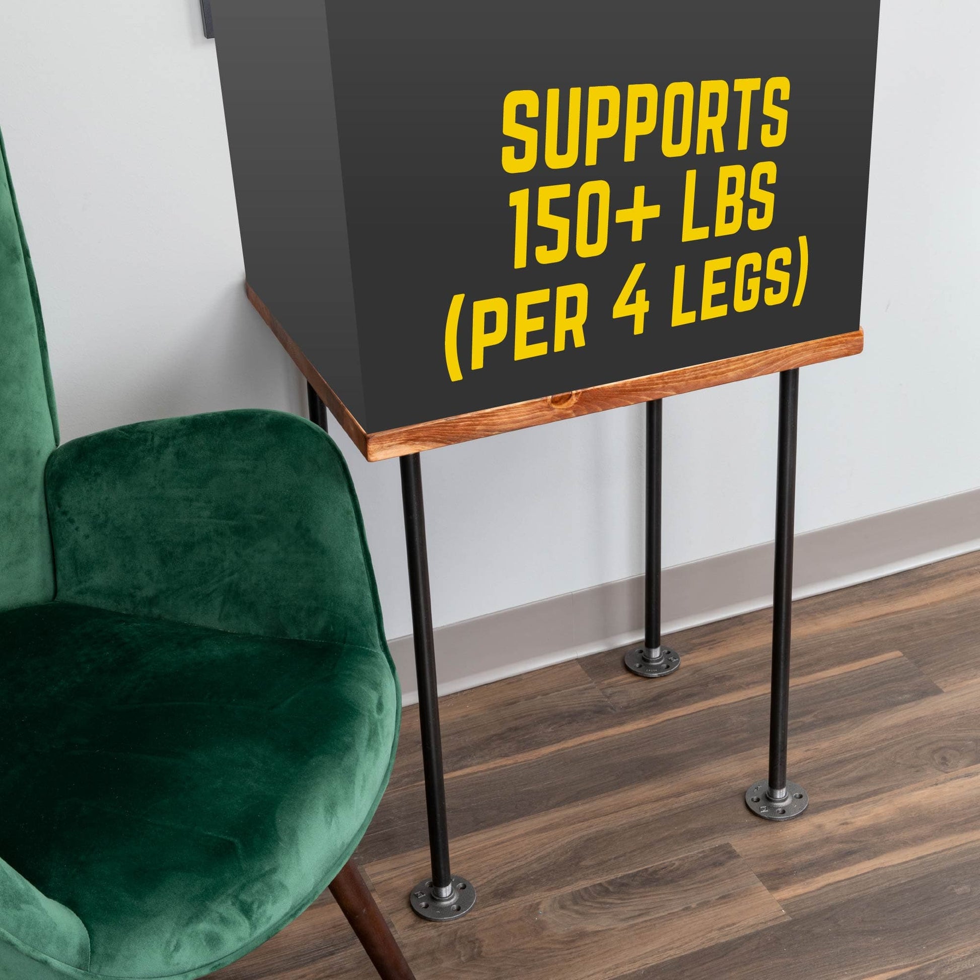 Use these pipe legs for coffee tables, end tables, TV stands, or a lower desk. PIPE DECOR industrial table legs will add a touch of modern industrial chic to any room in your house. Sturdy steel pipe easily supports the wooden tabletop of your choice. The set comes with everything you will need to assemble the table legs, plus step-by-step illustrated instructions. You will know PIPE DECOR parts and accessories when you hold them. Beauty and beast. Strength and style. This is real industrial pipe for your creative design needs. Accept no substitutes. All of our pipes and fittings come coated in a light industrial grease to prevent rusting. Clean and seal each piece, before assembly, to ensure that they stay rust-free. After cleaning, seal the pipe with polyurethane spray to protect it from rust and scratches.