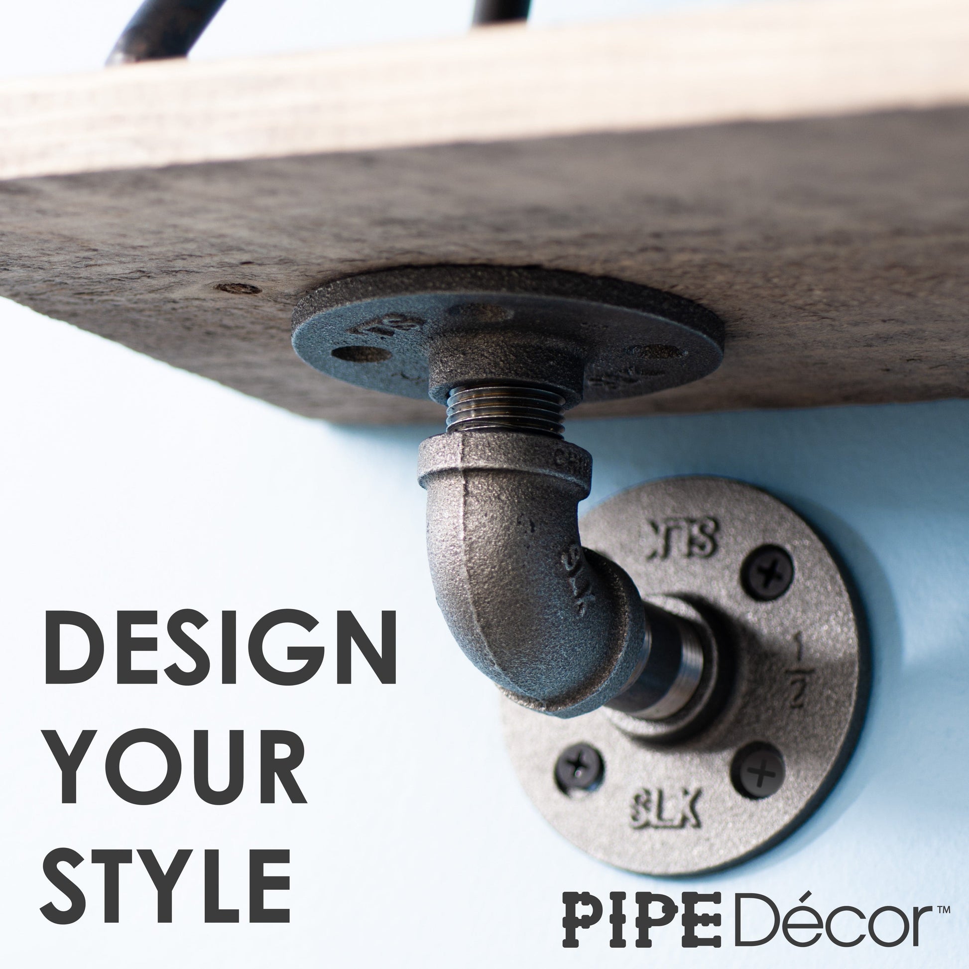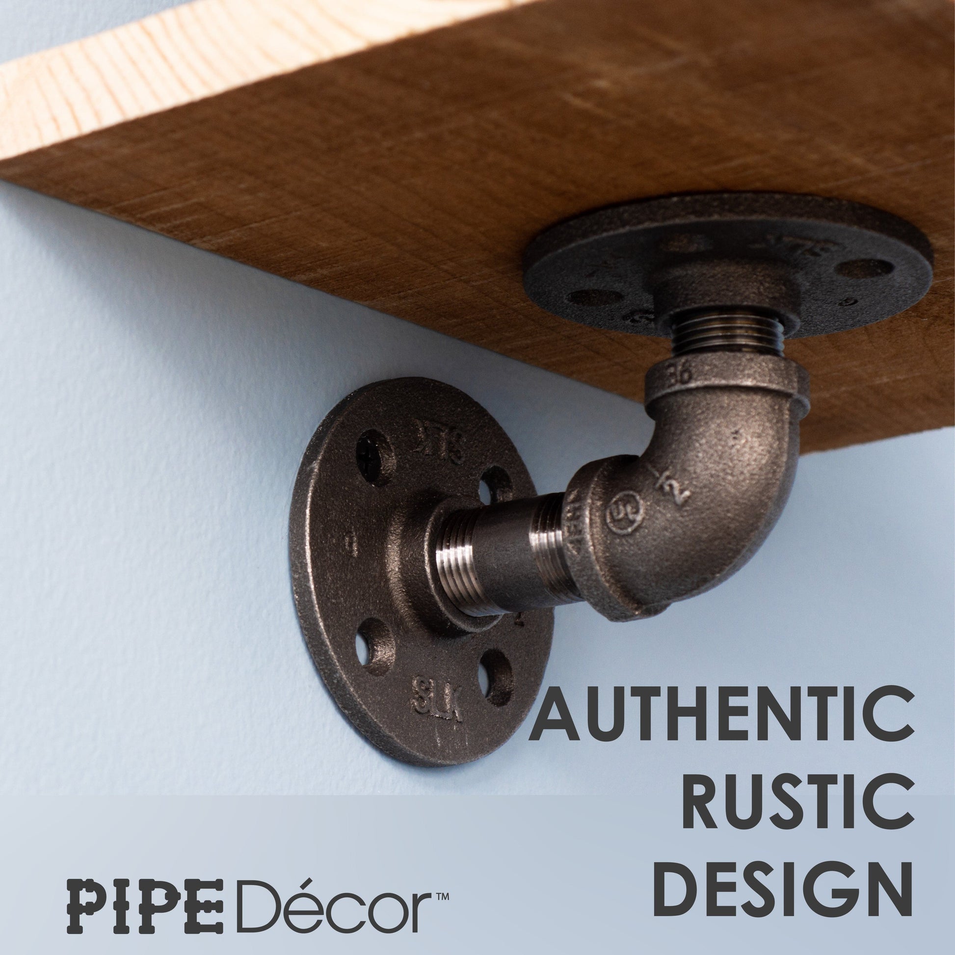 Add eye-catching style to your new set of shelves with these heavy-duty, double flange shelving brackets. Iron fittings pair impeccably with woods of various colors and sizes. Treat your visitors to your sense of style and attention to detail. Black steel pipe fits a surprising number of looks and aesthetics, including steampunk lighting, industrial, factory, French country farmhouse, vintage, retro reclamation, and D-I-Y and water piping. You will know Pipe Decor parts and accessories when you hold them. Beauty and beast. Strength and style. This is real industrial pipe for your creative design needs. Accept no substitutes. All our pipe and fittings come coated in a light industrial grease to prevent rusting. Clean and seal each piece, before assembly, to ensure that they stay rust-free. After cleaning, seal the pipe with polyurethane spray to protect it from rust and scratches.