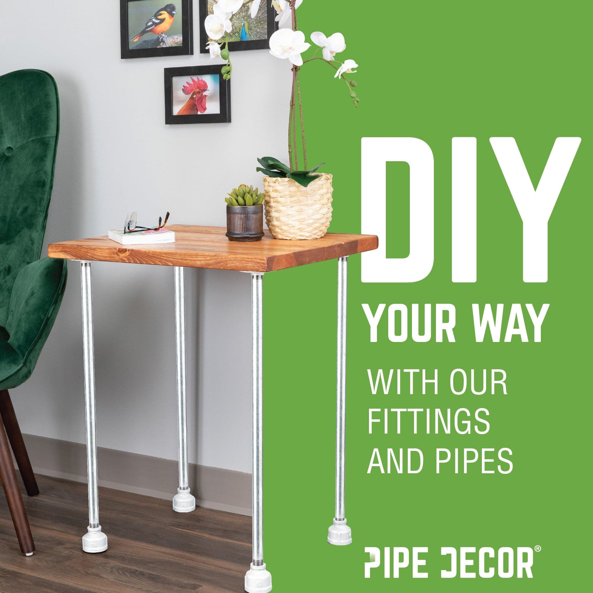 Compatible with any pipes, fittings, and PIPE DECOR furniture kits of the same diameter