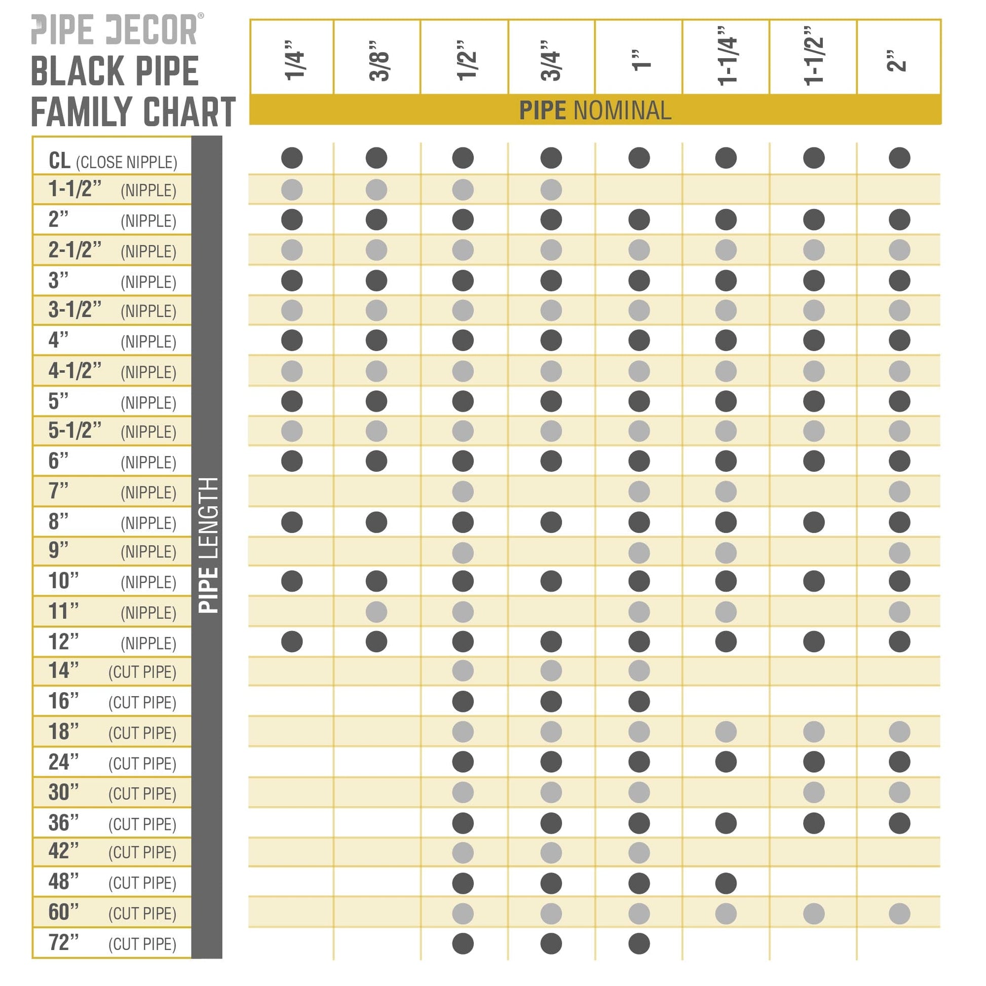 PIPE DECOR pre-cut pipe can be used for either plumbing or decor installations. This is genuine schedule 40 black steel pipe that has been hydrostatically tested and is ASTM and ASME compliant. Each pipe comes pre-threaded, is free of any stickers, and comes coated in a light industrial oil to prevent rusting. Ideal for pipe decor, or use in standard gas, air, and liquid propane applications.