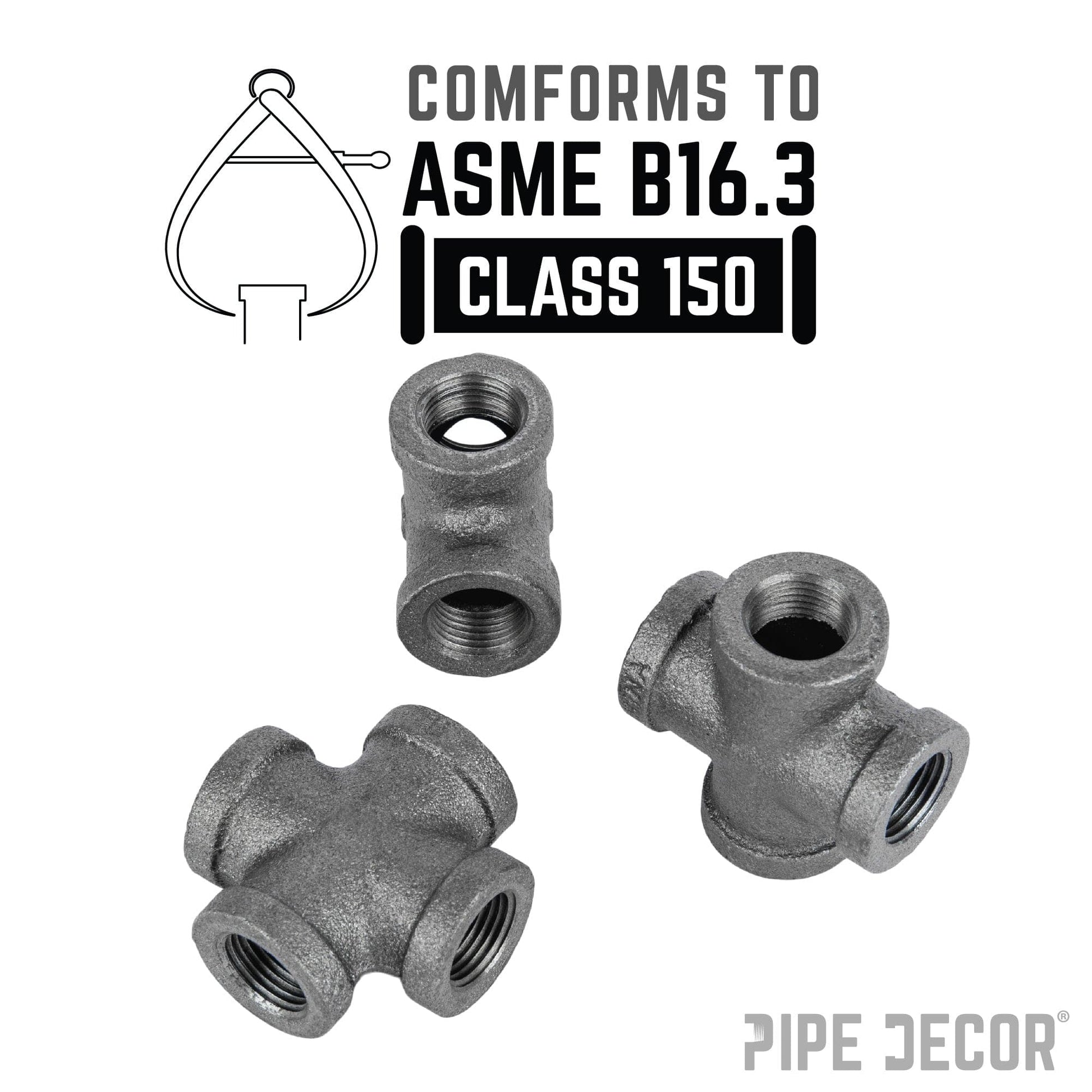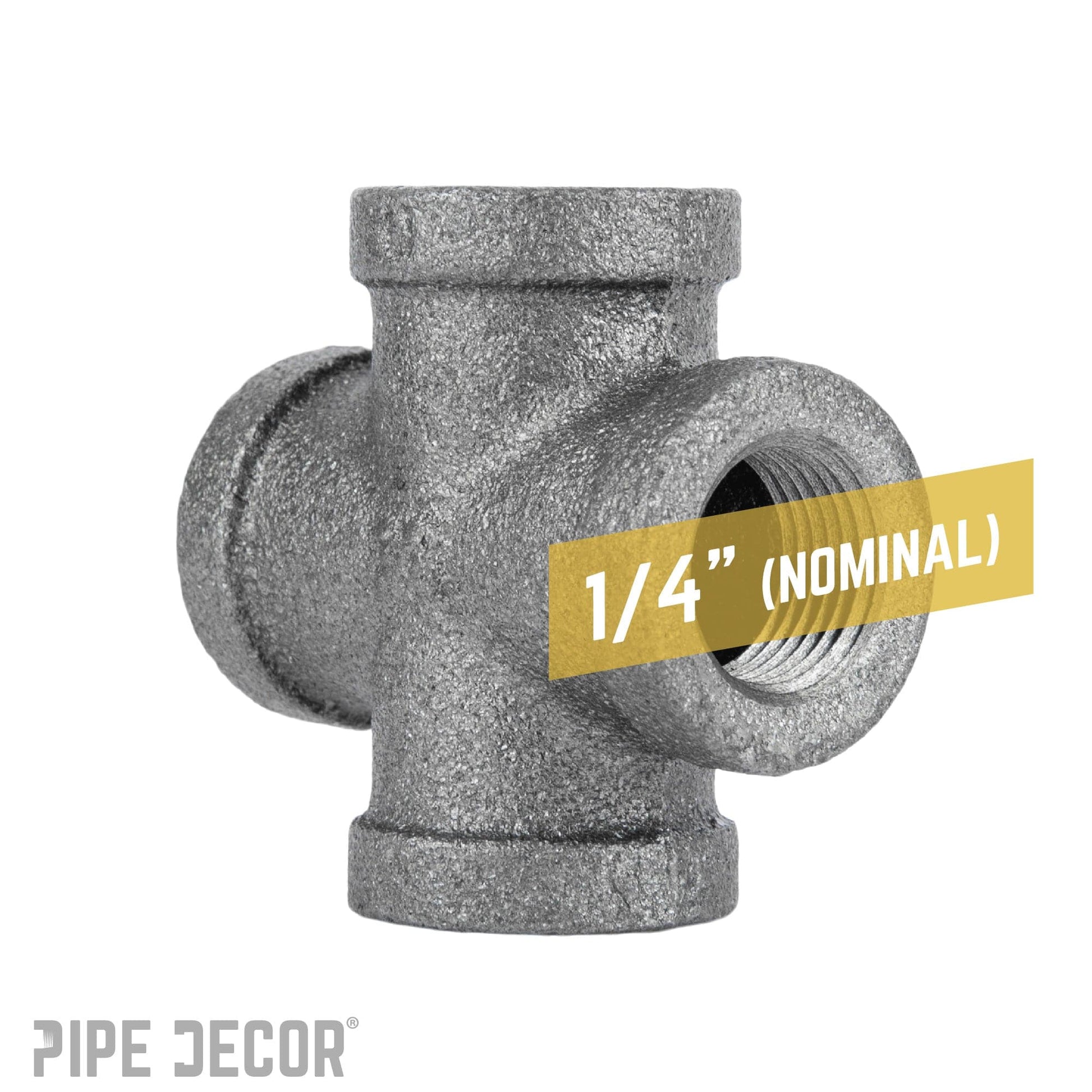 Let your DIY dreams run wild with cross fittings. They are the perfect piece for any type of table, desk, or fixture. This four-way fitting allows you to connect four pipes, each at a 90-degree angle from the next. Our fittings are made with durable, industrial-grade malleable iron. Fittings are 100% authentic and are made to stand the test of time. You will know PIPE DECOR parts and accessories when you hold them. Beauty and beast. Strength and style. These are real industrial fittings for your decorations and designs. Accept no substitutes. Extra pieces and accessories are available for your custom projects and expansions. Plug and play as desired.