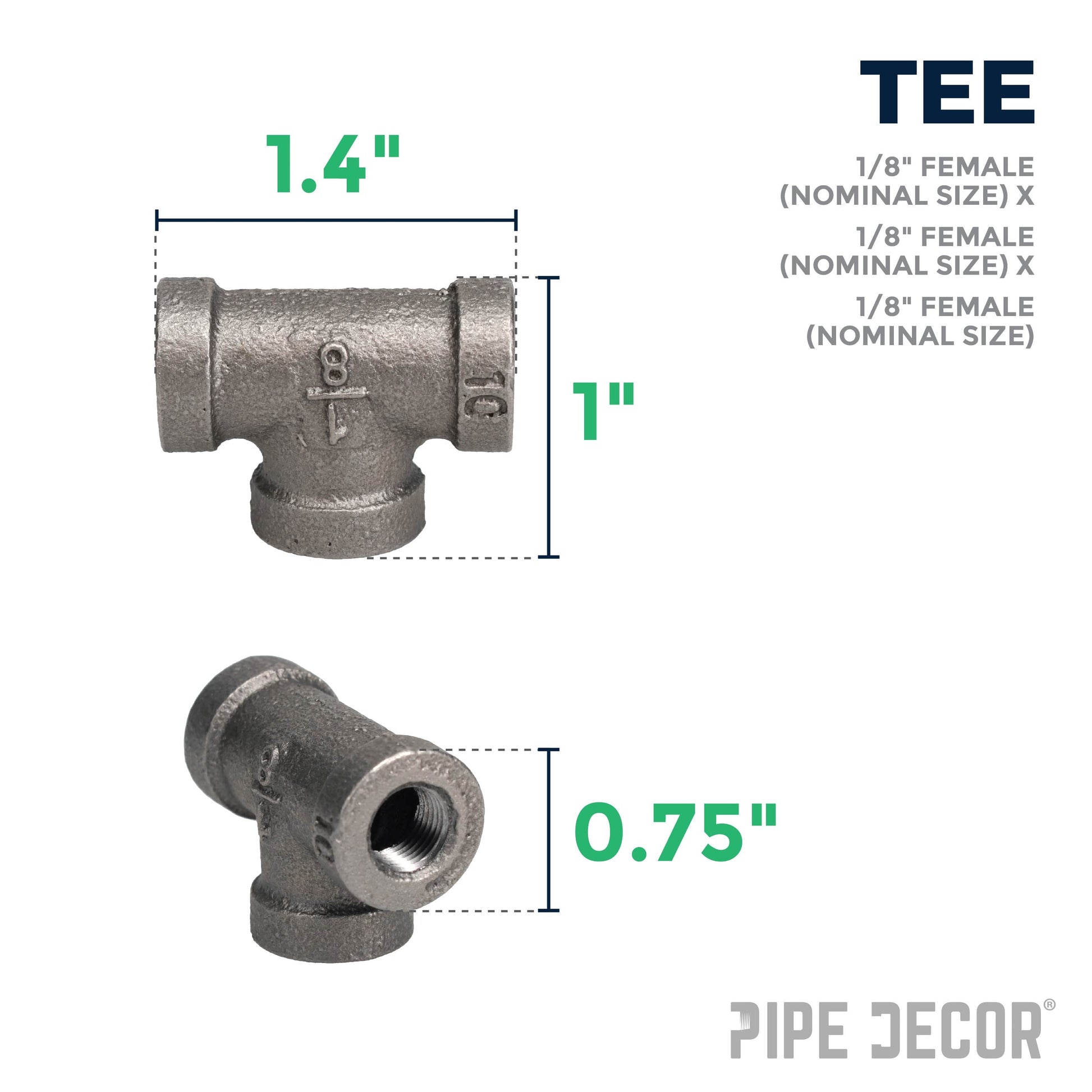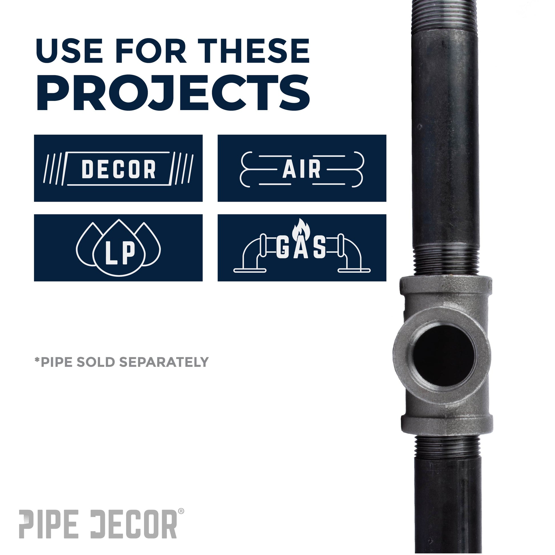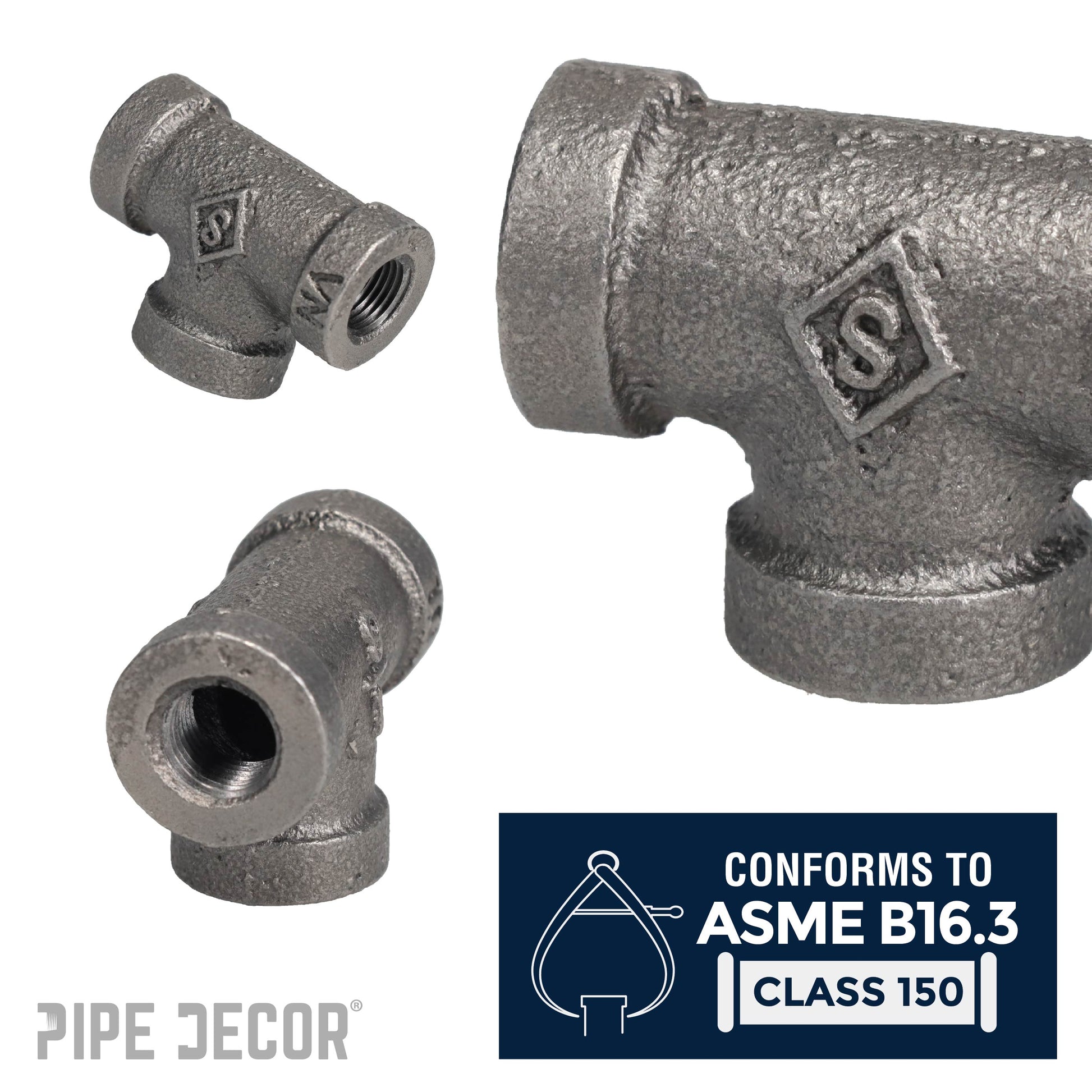 Create a one-of-a-kind shelf, table, lamp, or a piece of art that perfectly fits your space. This T-shaped fitting has three places to connect pipes, providing strength and stability to desks, tables, or any of your DIY creations. Our fittings are made with durable, industrial-grade malleable iron. Fittings are 100% authentic and are made to stand the test of time. You will know PIPE DECOR parts and accessories when you hold them. Beauty and beast. Strength and style. These are real industrial fittings for your decorations and designs. Accept no substitutes. Extra pieces and accessories are available for your custom projects and expansions. Plug and play as desired.
