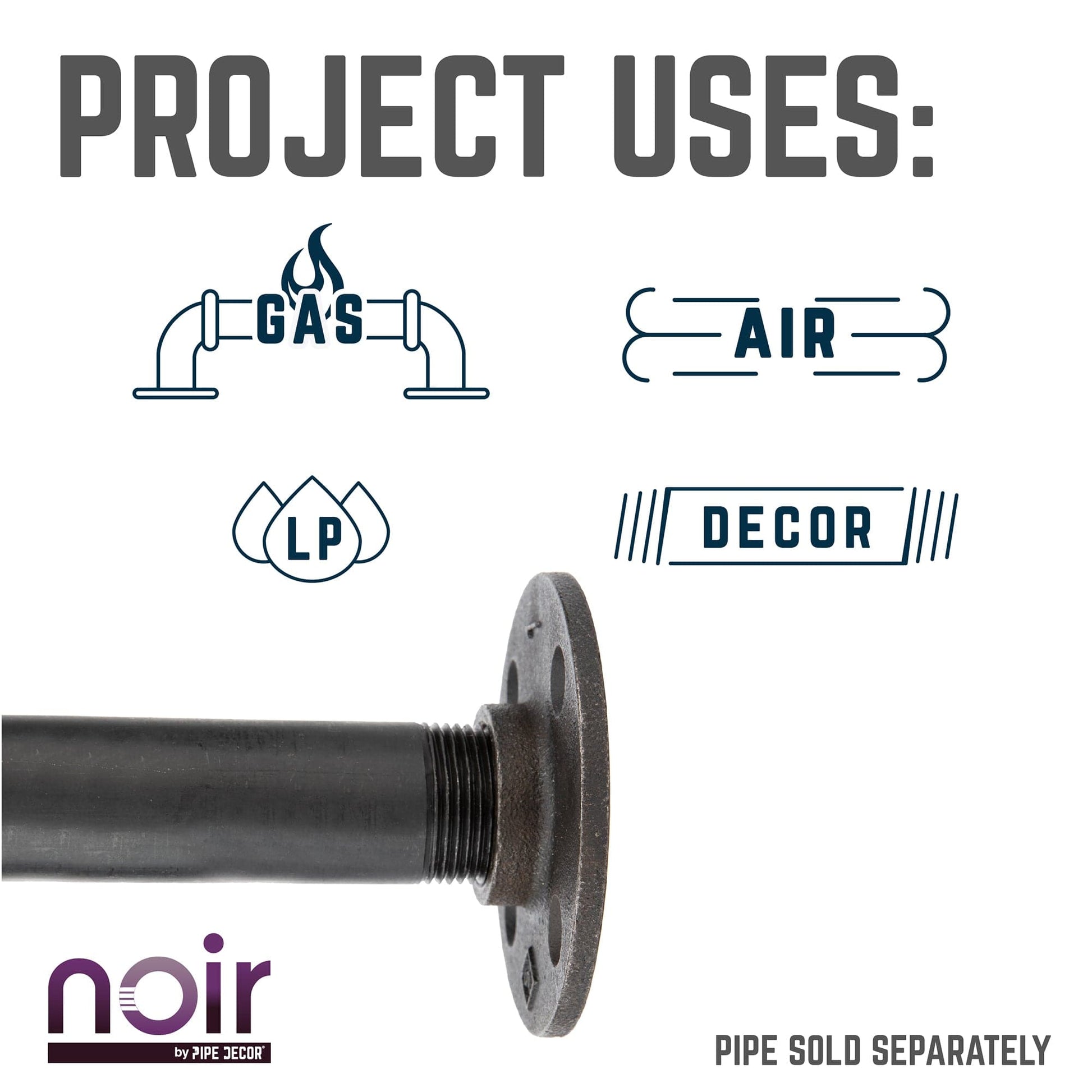 Take your industrial style to the next level with Noir by PIPE DECOR. These prefinished matte black iron fittings truly stand out from the crowd. Noir lends a sophisticated vibe to any PIPE DECOR piece. Build true black shelf brackets to pair with our RESTORE wood shelves or add black flanges to the ends of your pipe table legs. Noir also looks great with brass or galvanized accents. Combine any of our fitting finishes for a one-of-a-kind project that’s unique to you. The beauty of Noir goes below the surface. Unlike electroplated or painted items, our finishing process causes the matte black color to permeate each fitting for a deep tone that will last a lifetime. That means you never have to worry about chips or scratches. While our standard black pipes and fittings are coated in a protective oil during transit, our Noir line comes completely ready to use—no need to clean and seal. It’s laid-back and low maintenance for the DIYer on the go.