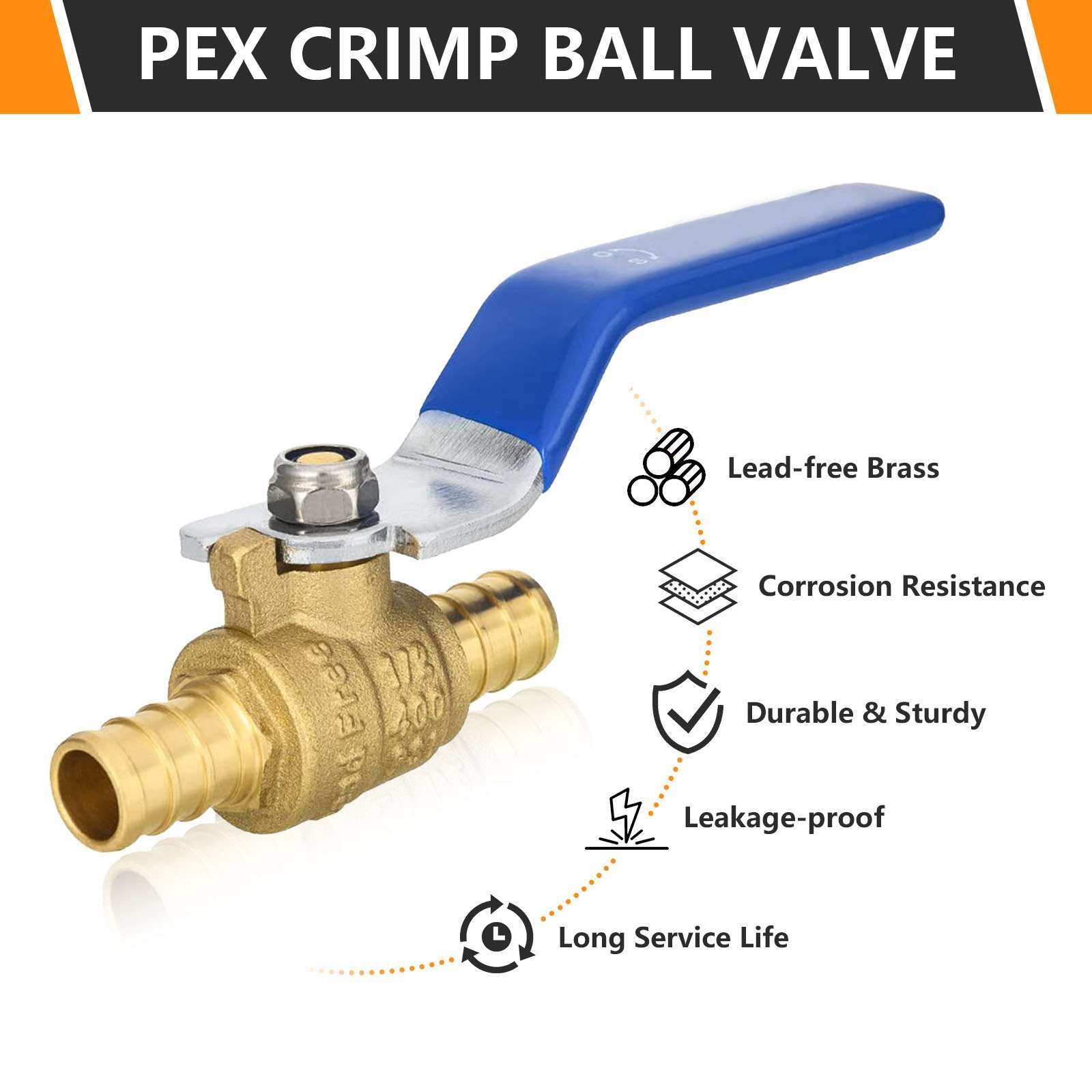 - 1-Inch Pex Crimp Brass Full Port Shut-off Ball Valve, Blue Level