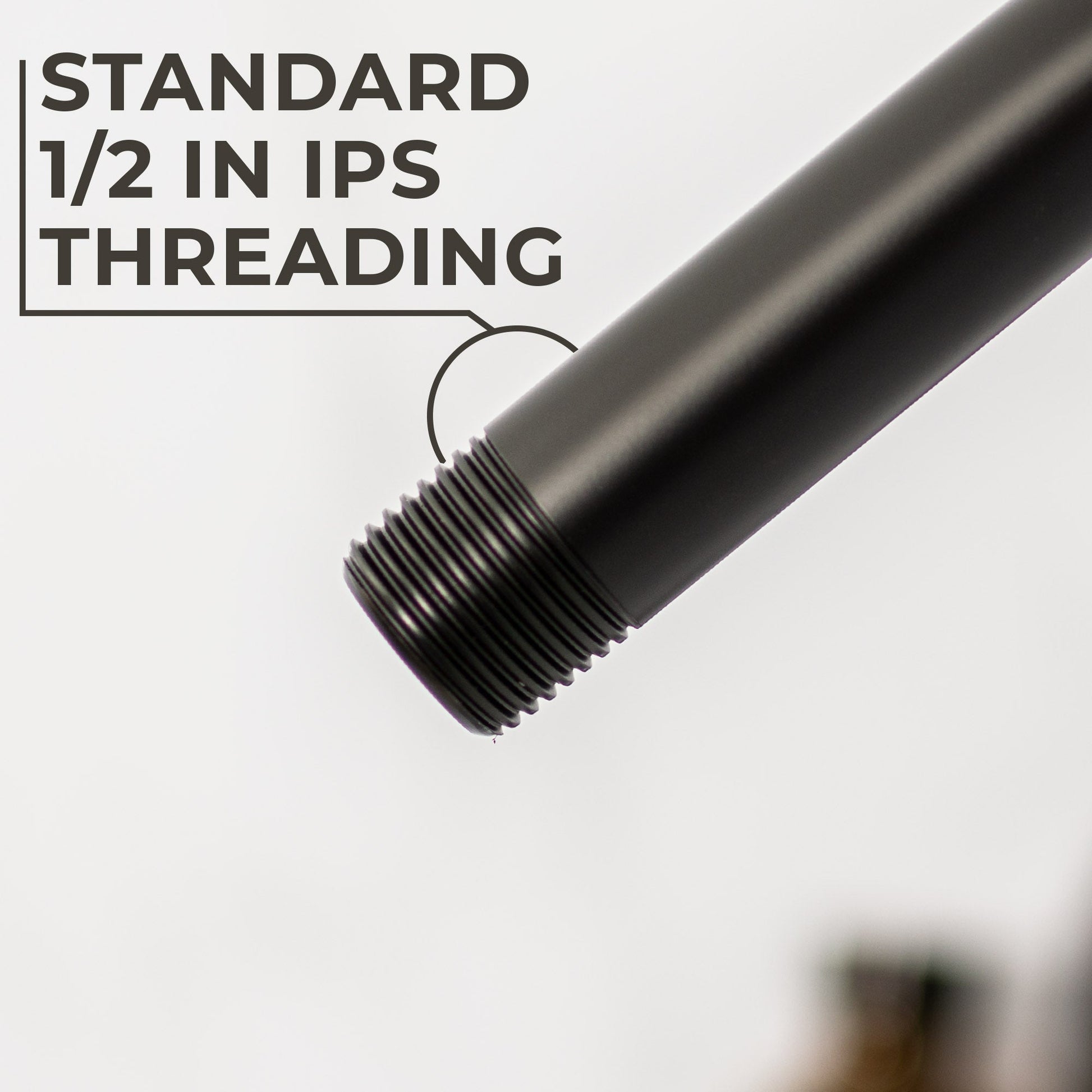 The arm’s sleek color and subtle design looks great with any decor scheme. The shower arm has ½ inch IPS male straight threading on both ends. The included flange will cover up the cut area around the pipe, providing a seamless look.