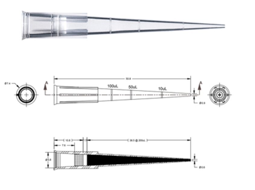 Quantity: 96 tips/Rack - 10 Racks/box - 5 boxes/Case - 50 rack/Case