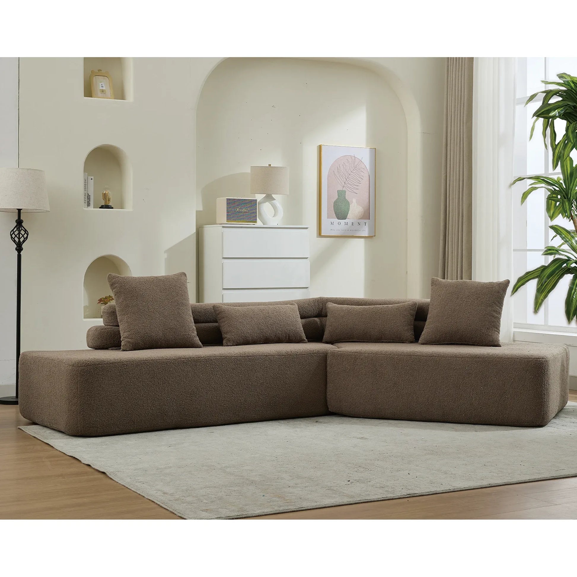 128"Minimalist Cloud Sectional Couch ,Modern Couches ,4-Seater ,No Assembly,Two modular sofa,Boucle Teddy Fabric, upholstered , anti-wrinkle fabric,Brown