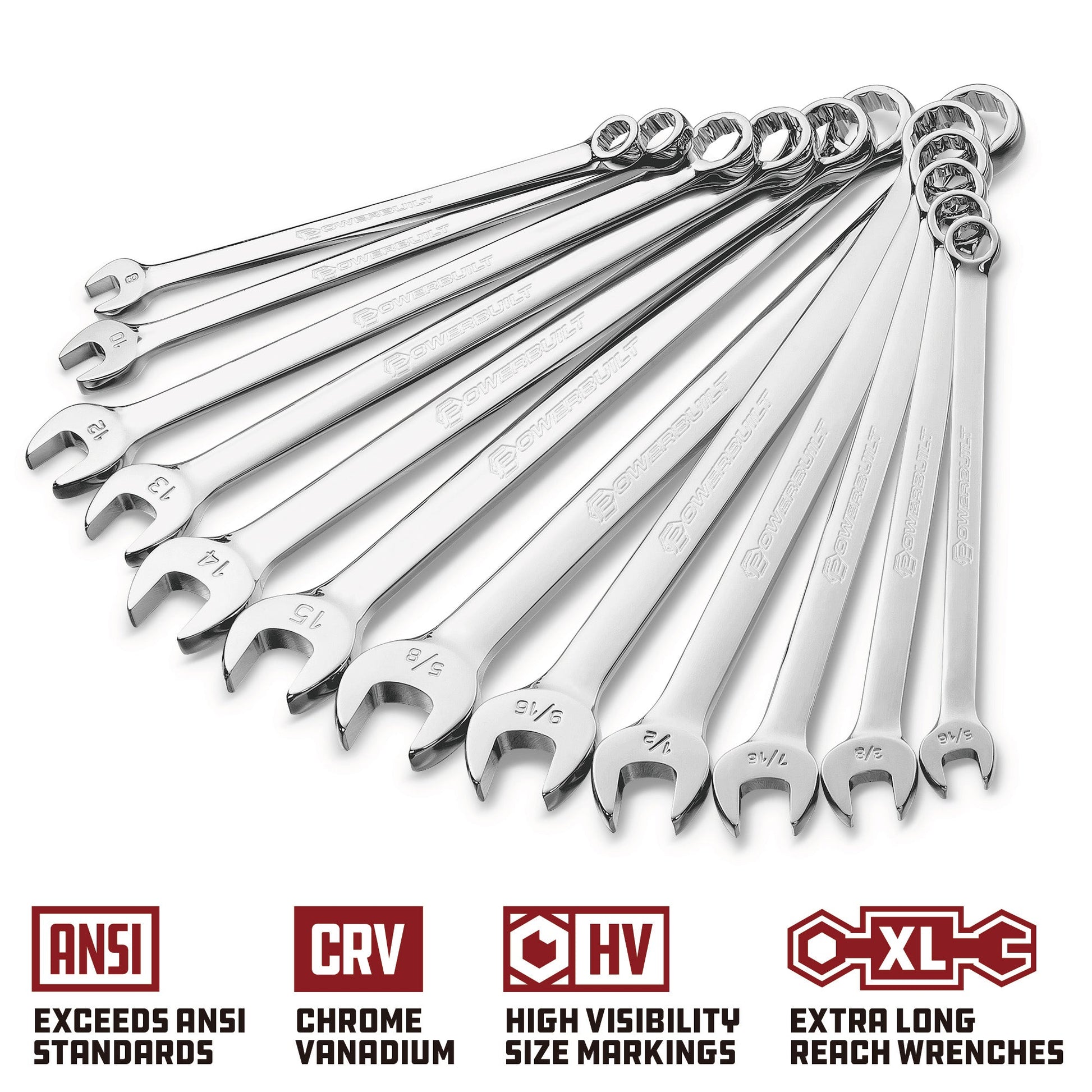 - SET INCLUDES: SAE and Metric set includes 1/4, 3/8, and 1/2 inch Drive deep and shallow; Sockets, Ratchets, and Accessories. Metric and SAE extra long reach combination wrenches and hex key sets. 1/4 inch drive spinner handle and bit coupler with bits including Phillips, Torx, Flat, Hex, and Square;