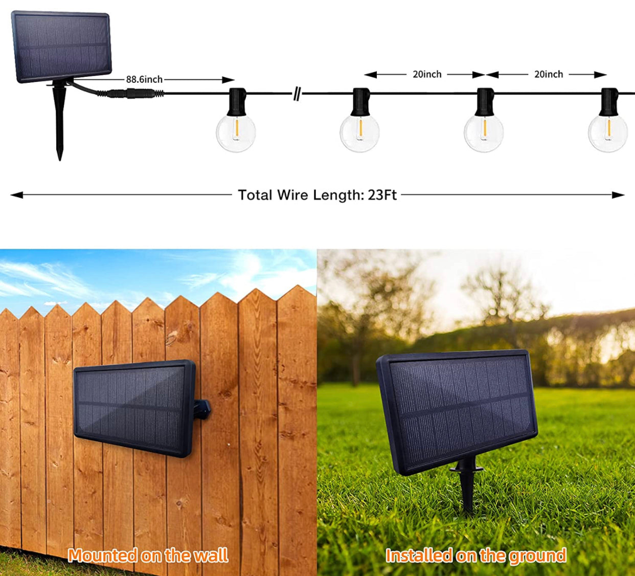 Each set of string lights will be equipped with spiked brackets and screws. You can either insert it on the ground or fix it on the wall. The solar panel can be flexibly rotated to achieve the maximum solar energy demand.