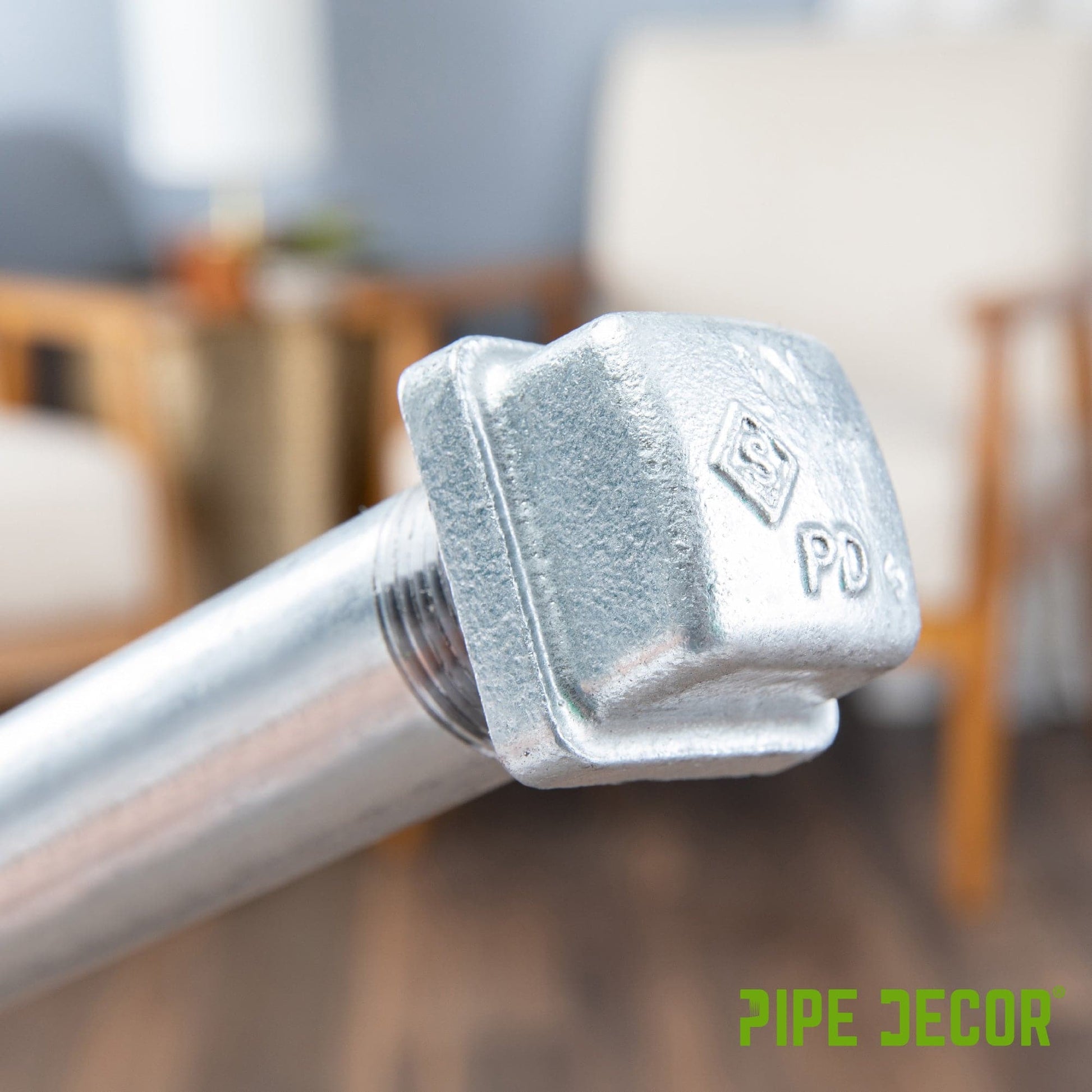 These are genuine galvanized pipe fittings that will stand the test of time. Galvanized malleable iron fittings are hot dipped in zinc, making them more resistant to corrosion. Our galvanized fittings are silver in color with a shiny finish that brings a clean, polished look to your pipe furniture. Galvanized pipes and fittings are prefinished, so you don’t have to clean or seal them before use.