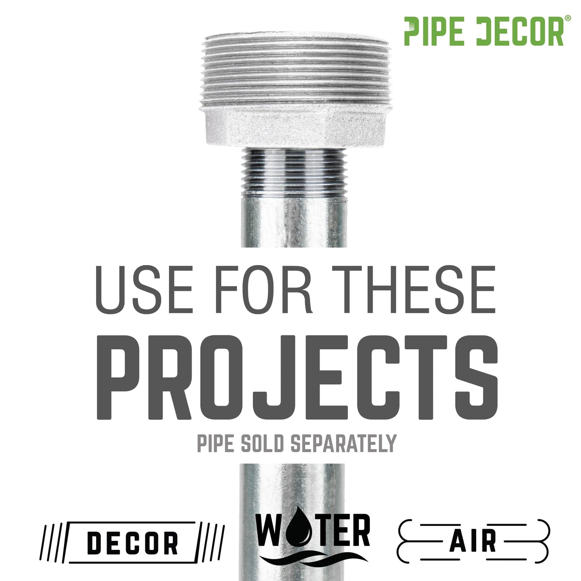 Make your standard fittings more versatile with our galvanized bushings. A bushing can be used in any project that involves connecting a larger fitting with a smaller pipe. Make the most of your DIY creations. Galvanized fittings are silver in color with a shiny finish that brings a clean, polished look to your pipe furniture. Our fittings are made with durable, industrial-grade malleable iron. Fittings are 100% authentic and are made to stand the test of time. You will know PIPE DECOR parts and accessories when you hold them. Beauty and beast. Strength and style. These are real industrial fittings for your decorations and designs. Accept no substitutes. Extra pieces and accessories are available for your custom projects and expansions. Plug and play as desired.