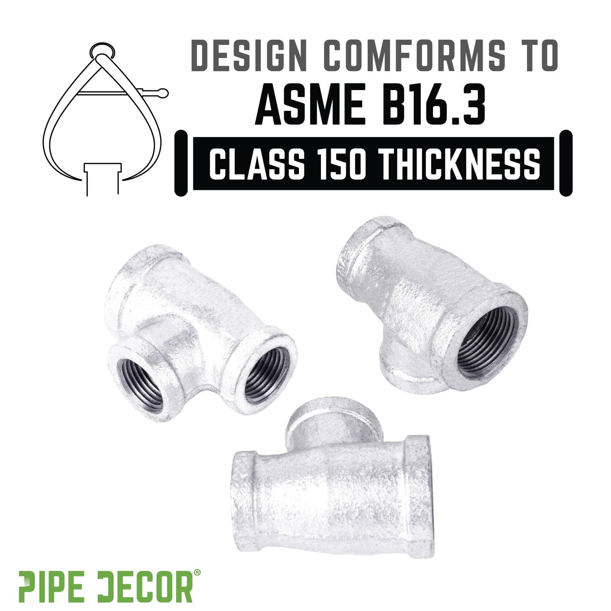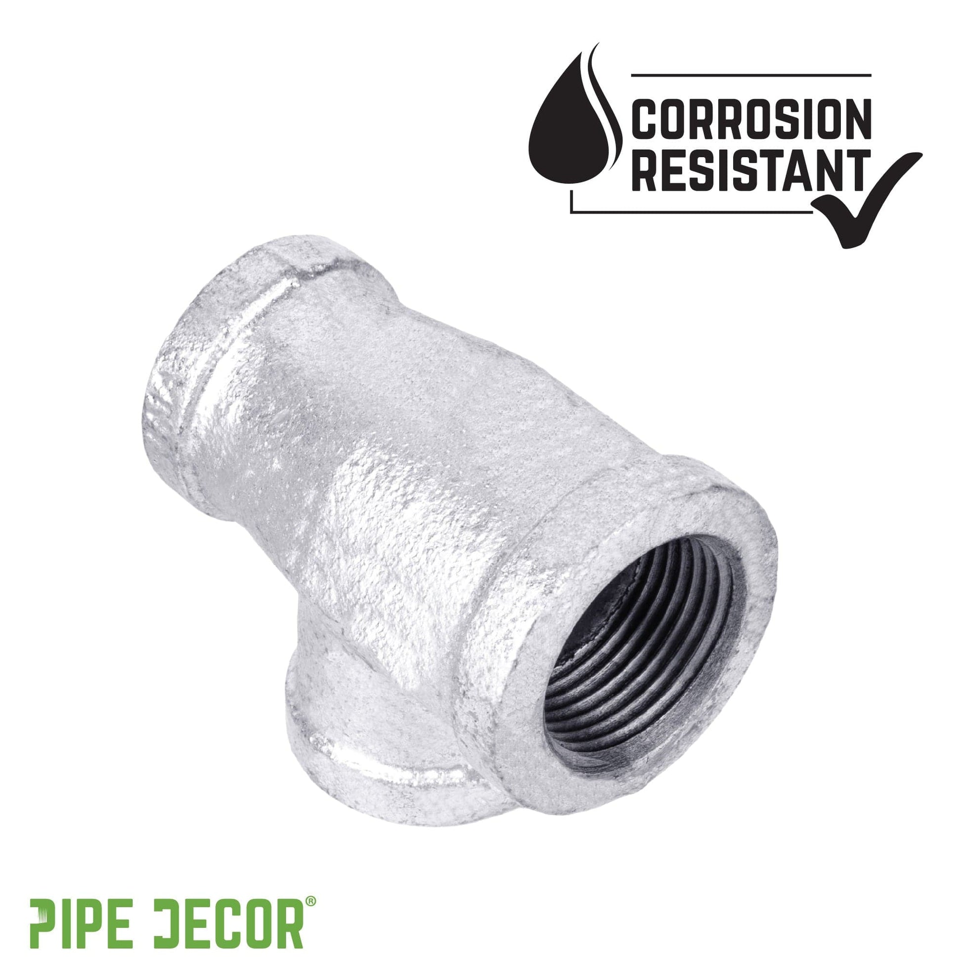 Reducing tees give you the flexibility to build the project of your dreams. You can use a galvanized reducing tee in almost any project that you would normally use a regular tee for, as long as the smaller pipe size can support the right amount of weight for your project. Using two different pipe sizes can make for a unique visual effect. Galvanized fittings are silver in color with a shiny finish that brings a clean, polished look to your pipe furniture. Our fittings are made with durable, industrial-grade malleable iron. Fittings are 100% authentic and are made to stand the test of time. You will know PIPE DECOR parts and accessories when you hold them. Beauty and beast. Strength and style. These are real industrial fittings for your decorations and designs. Accept no substitutes. Extra pieces and accessories are available for your custom projects and expansions. Plug and play as desired.