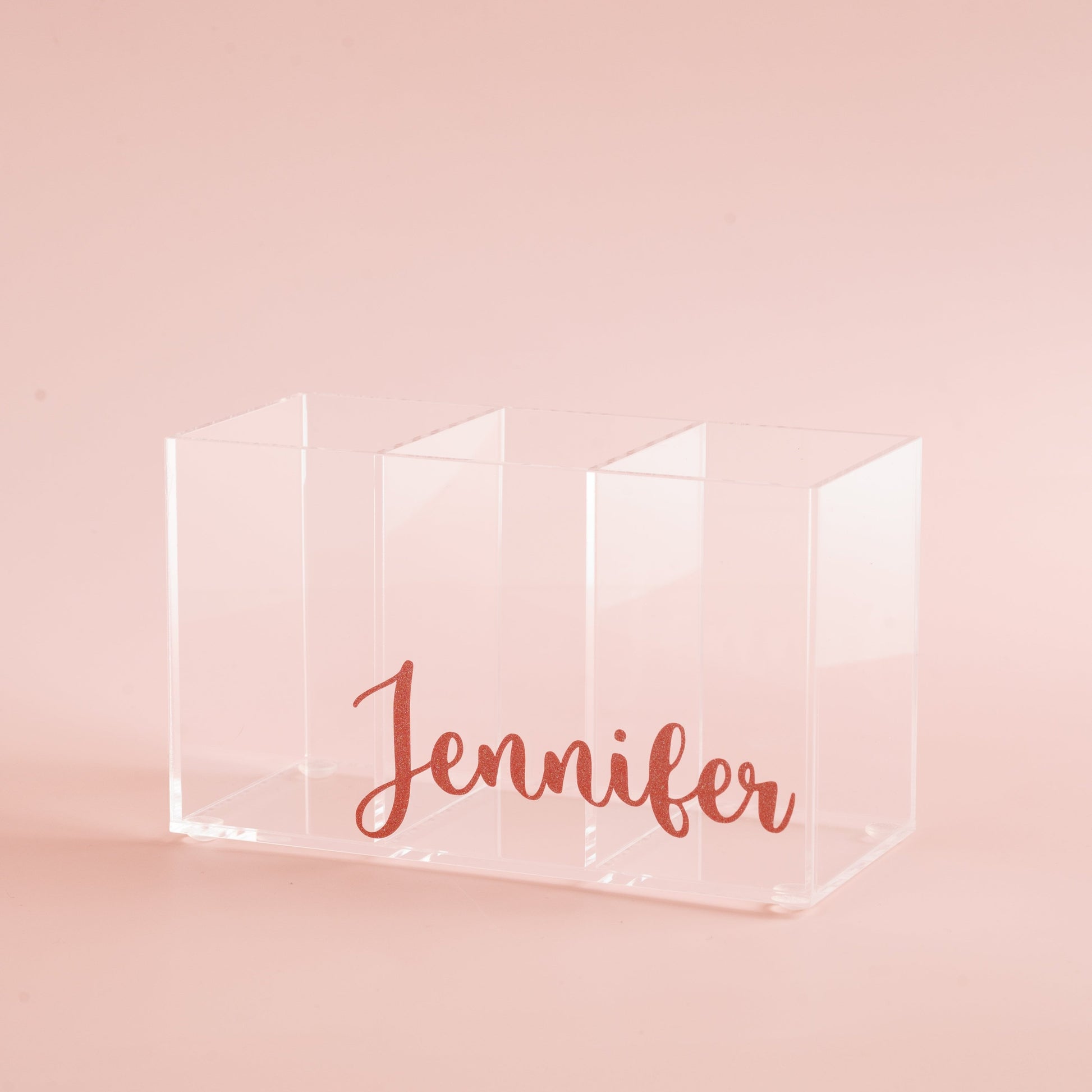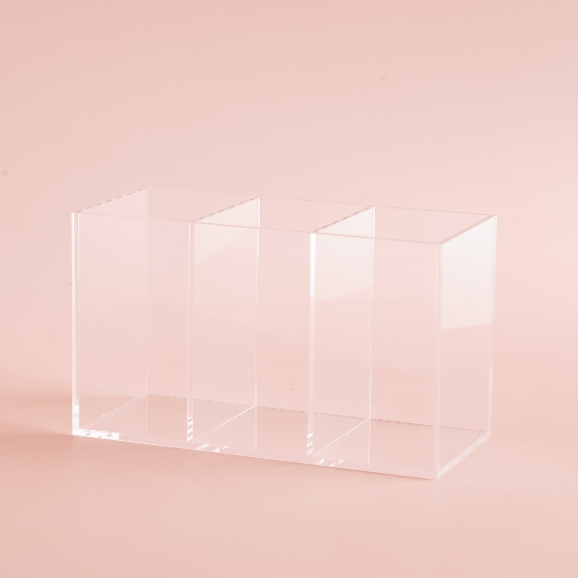 A spacious pen holder featuring 3 separate compartments for storage and everyday use.
