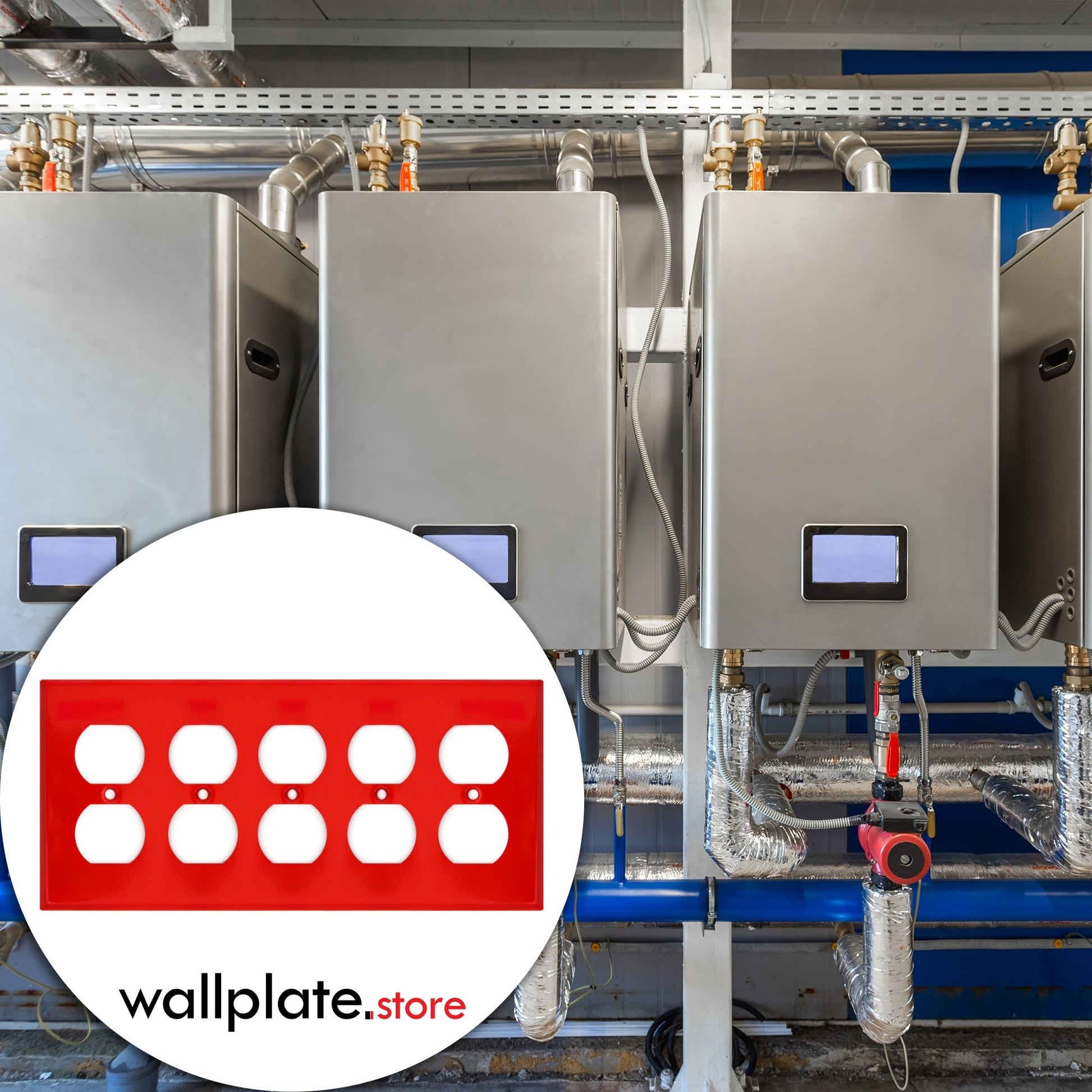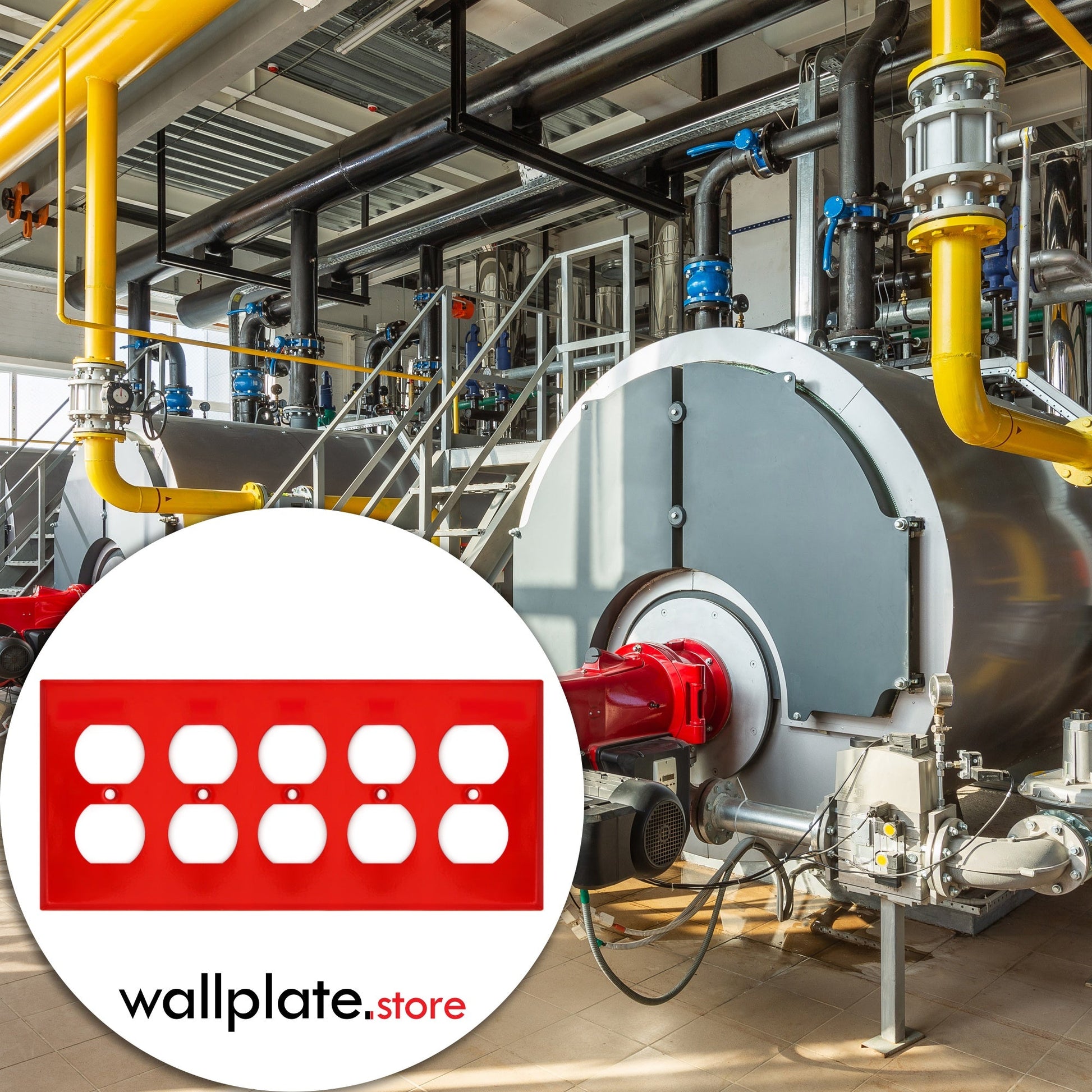 Construction:Painted metal; cold-rolled steel, 0.030 inches thick Gang:5 Size:Standard (4.5 in. high x 10.00 in. wide) Opening:(5) Duplex Mounting:Device