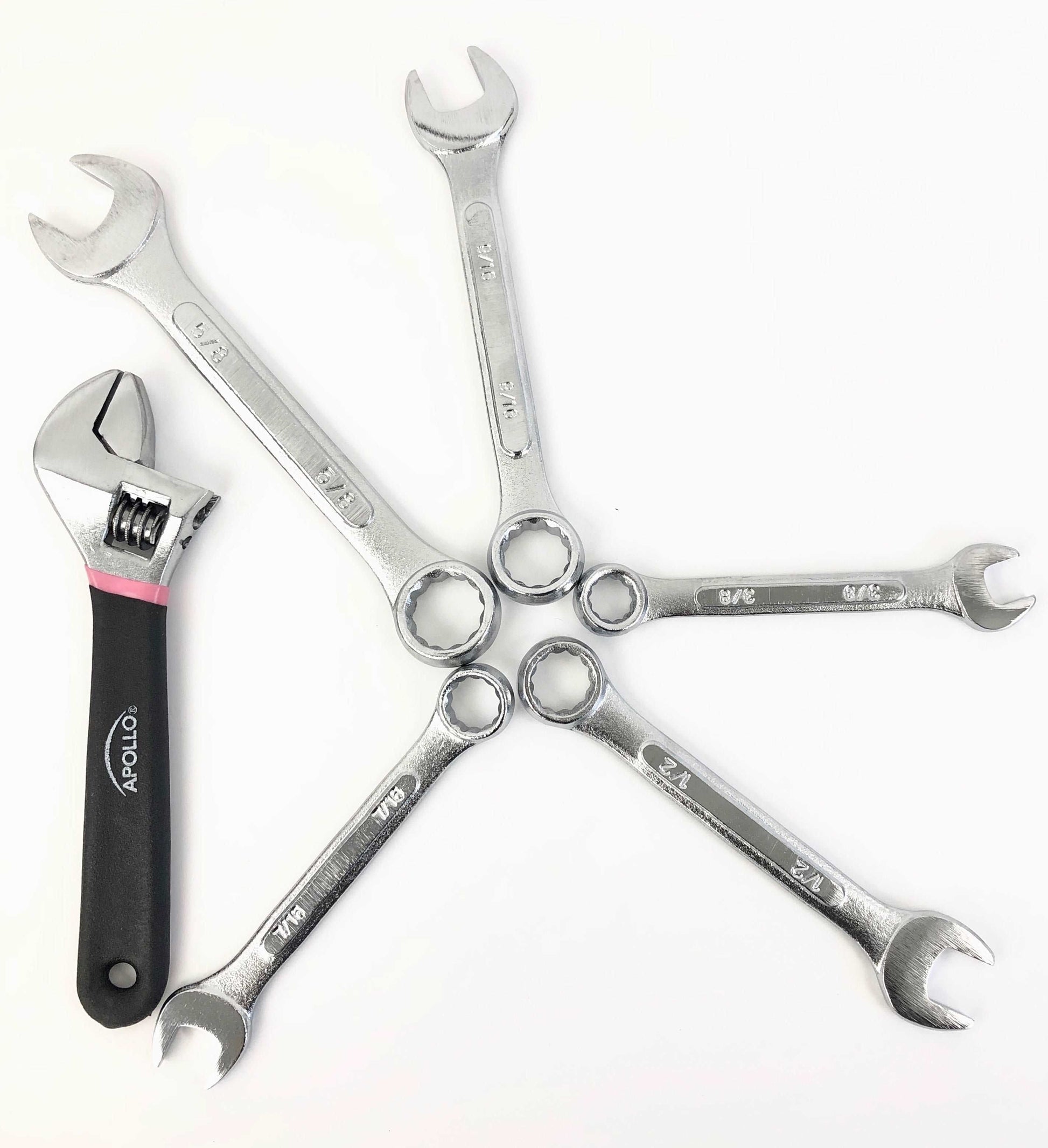 - Four SAE Combination Wrenches: 3/8", 7/16", 1/2", 9/16"
