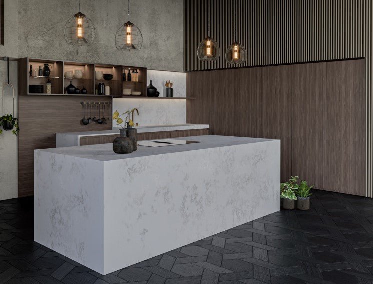 Experience the artistry of Altamonte Wilsonart with its soft fog mist background accented by large scale organic swaths, gracefully transitioning in color from creamy white to golden neutral to bronze.
