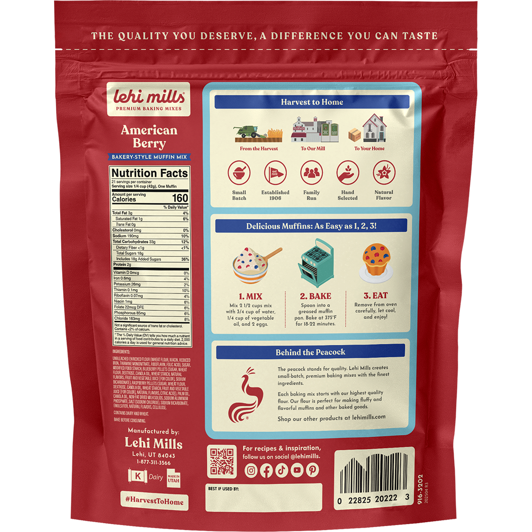 Crafted with care and using premium ingredients, this muffin mix allows you to create muffins that pay homage to the rich agricultural bounty of the American landscape. The vibrant colors and natural sweetness of the berries infuse each muffin with a burst of flavor, creating a delightful harmony that's perfect for any occasion.