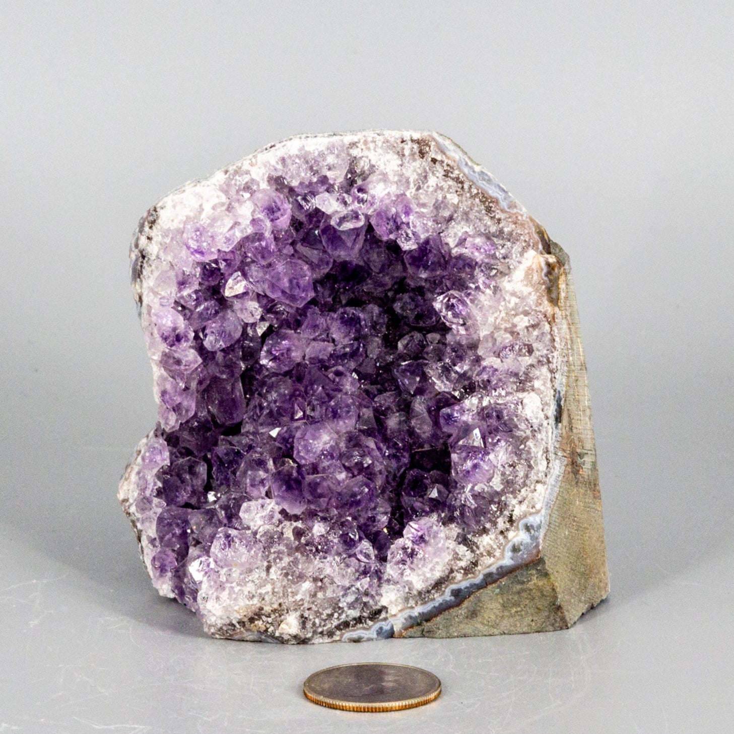 The Amethyst Geode is a stunning natural formation prized both for its striking beauty and powerful metaphysical properties. This crystal cluster features deep violet to purple hues, radiating a serene energy that is widely regarded as calming and protective. In metaphysical traditions, amethyst is known to foster spiritual growth, enhance intuition, and promote tranquility. Its energy helps to clear negative influences and brings balance to the mind, making it an ideal stone for meditation and stress relief. Geodes amplify the stone’s natural vibrations due to their hollow, crystalline interior, encouraging an environment of healing and positive transformation.