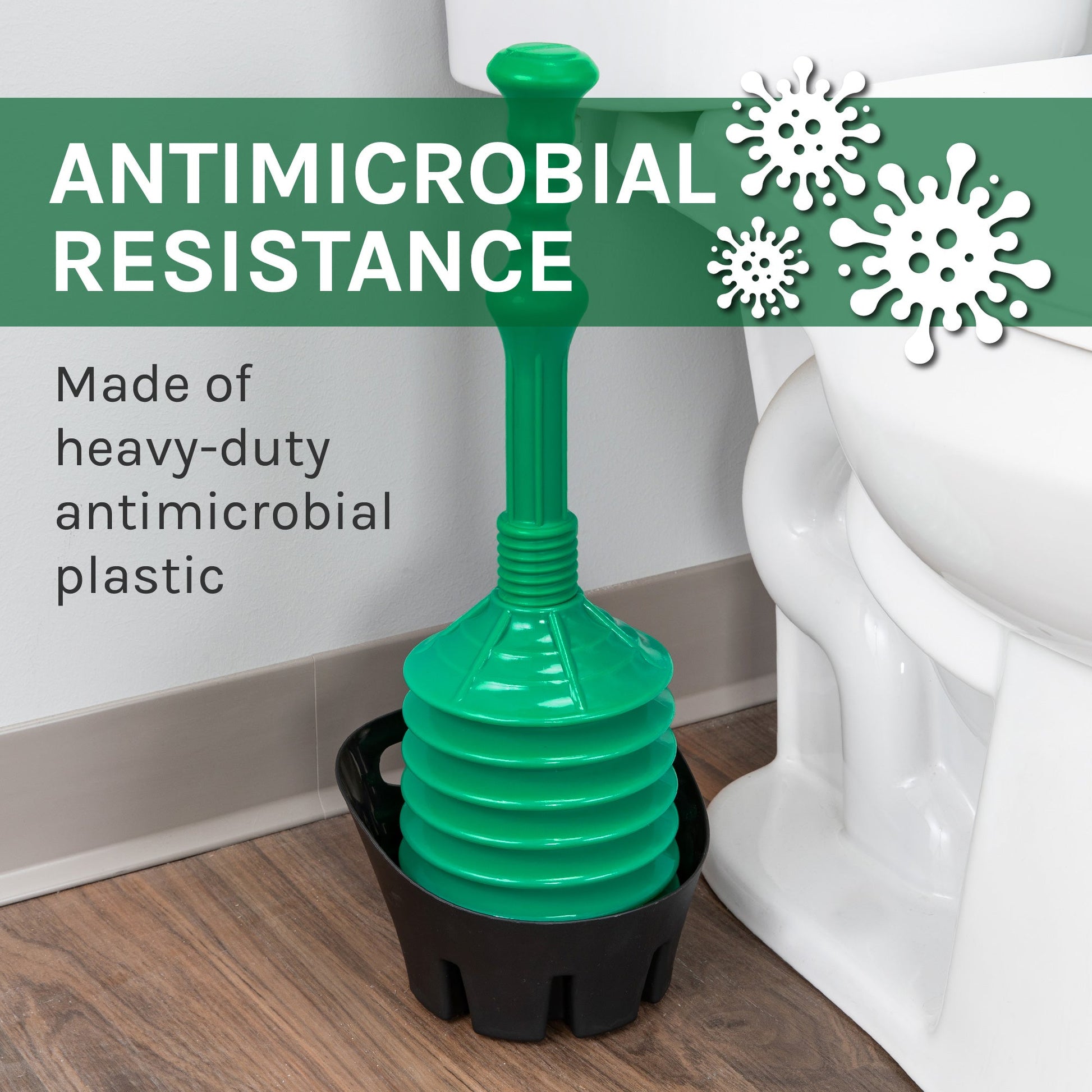 Antimicrobial Bellows Accordion Toilet Plunger with Black Storage Tray (Green)