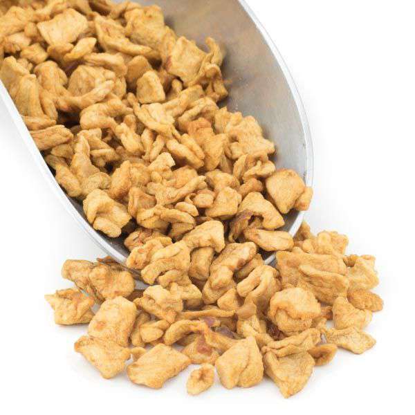 Apple dices are small squares of dried, ripe apples. They are a light brown color because they do not contain Sulphur.