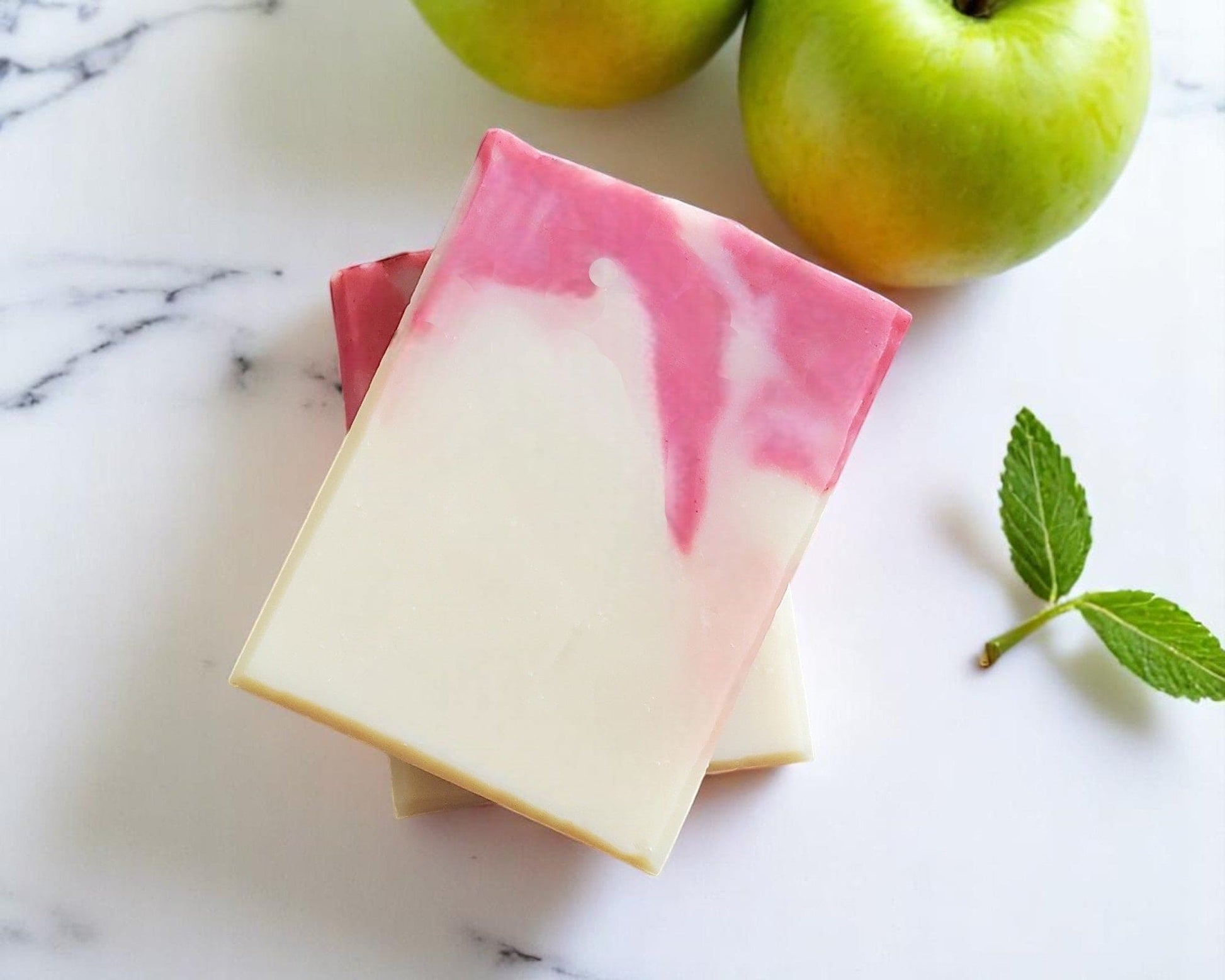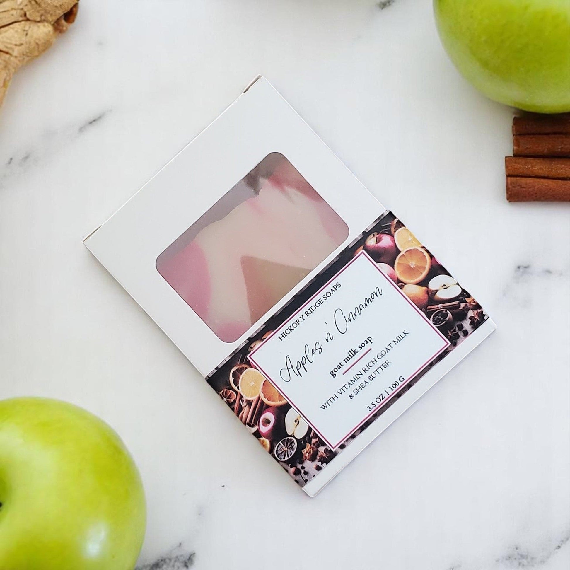 Indulge in the delightful scent of our Apples n' Cinnamon Soap Bar! Handcrafted with care, this handmade soap is made using traditional cold process soap techniques, ensuring that every bar is packed with beneficial ingredients. Infused with the luscious aroma of juicy apples and a warm hint of spice, this luxurious goat milk soap will transport you to a cozy autumn orchard. With the added goodness of natural soap with shea butter, your skin will feel clean and pampered with every wash. The enchanting fragrance also combines notes of orange, maple, vanilla, and cream, creating a truly delightful experience. Treat yourself or a loved one to the loving properties and irresistible scent of our Apples n' Cinnamon Soap Bar—a perfect addition to your skincare routine!