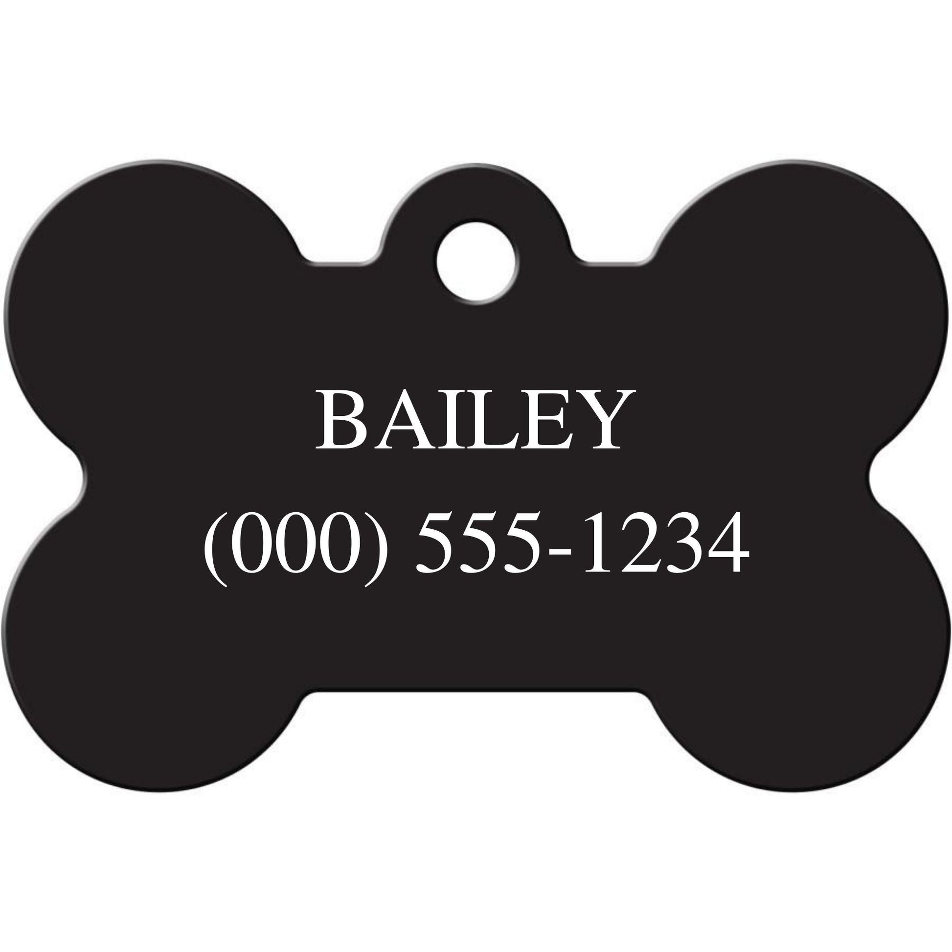 Personalization includes up to 4 lines of engraved text on the bone-shaped pet ID tags.