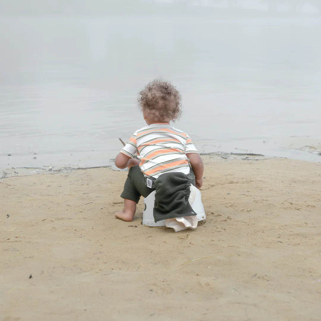 Our Chappy-Nappy pants are compatible with all Flappy-Nappies® cloth diaper products. The diaper snaps directly to the waist of the crotchless pants, allowing the diaper to open from the front or back.