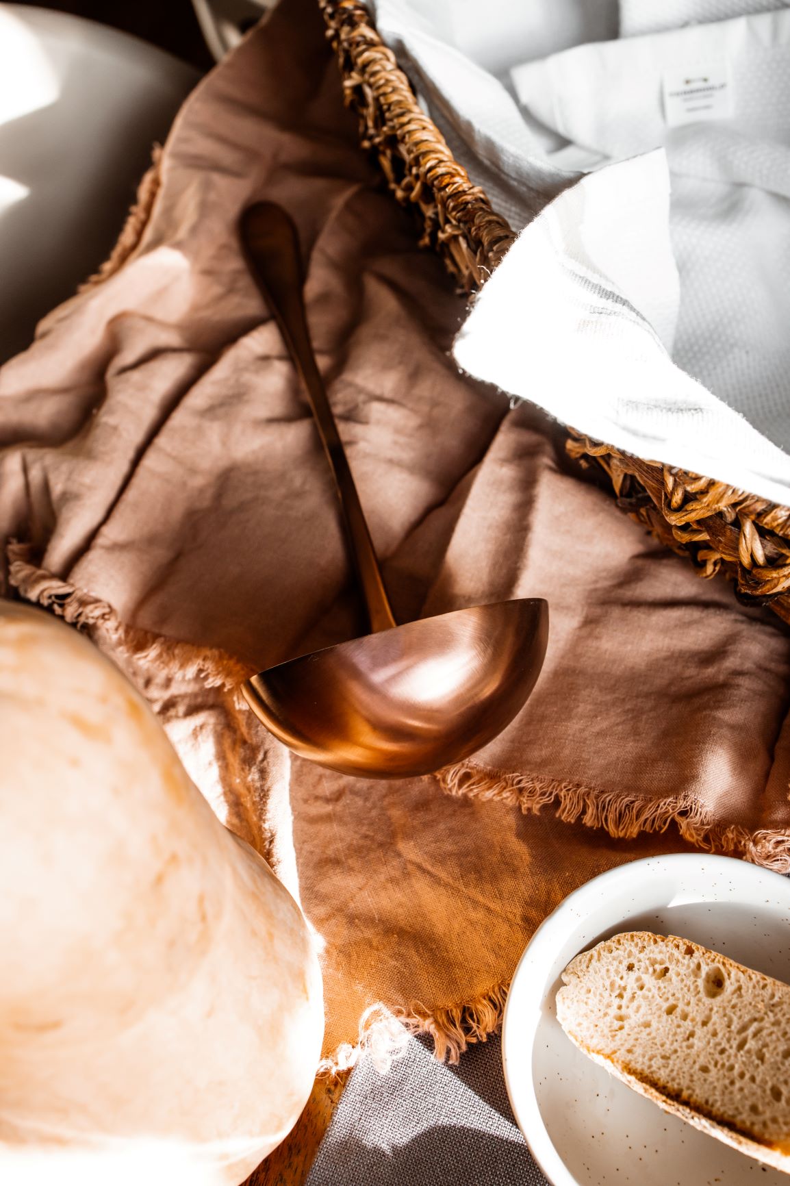 Create a breathtaking table top with these sleek and striking serving pieces that work in both casual and elegant settings. Includes a soup ladle and a casserole server. Part of our original Knork family, this duo is hand-forged, crafted from 18% stainless steel, the titanium coated technique is PVD and is scratch resistant.