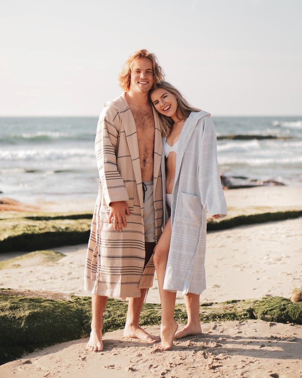 Our robe has a timeless and luxurious soft feel, perfect for all seasons. Tailored for comfort with kimono style sleeves, deep pockets and a long belt. Use as a coverup post shower or swim or a comfortable and stylish kimono style robe as daywear.